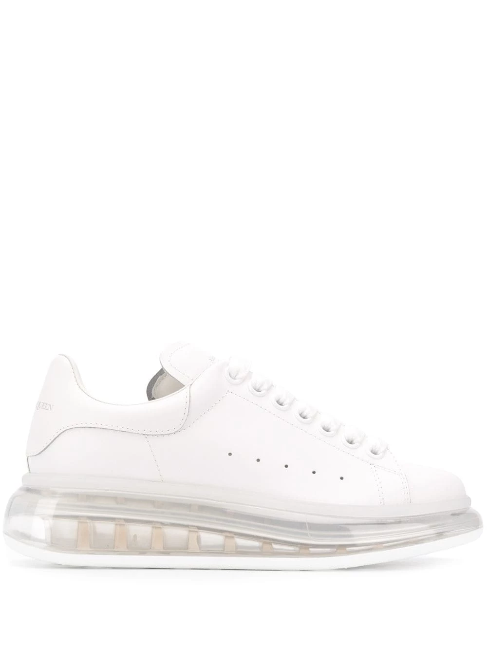 You don’t need convincing when it comes to getting these oversized leather sneaker from Alexander McQueen. The reason you need these is crystal-clear – and so is the sole! You’ll see-through all the persuasive language used anyway, because you’re smarter than that. Featuring a brand embossed tongue, a round toe, a perforated detail, a transparent oversized sole and an embossed logo to the back.