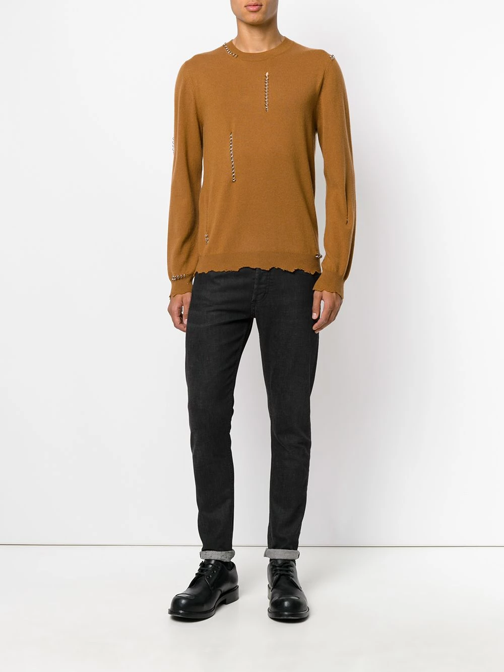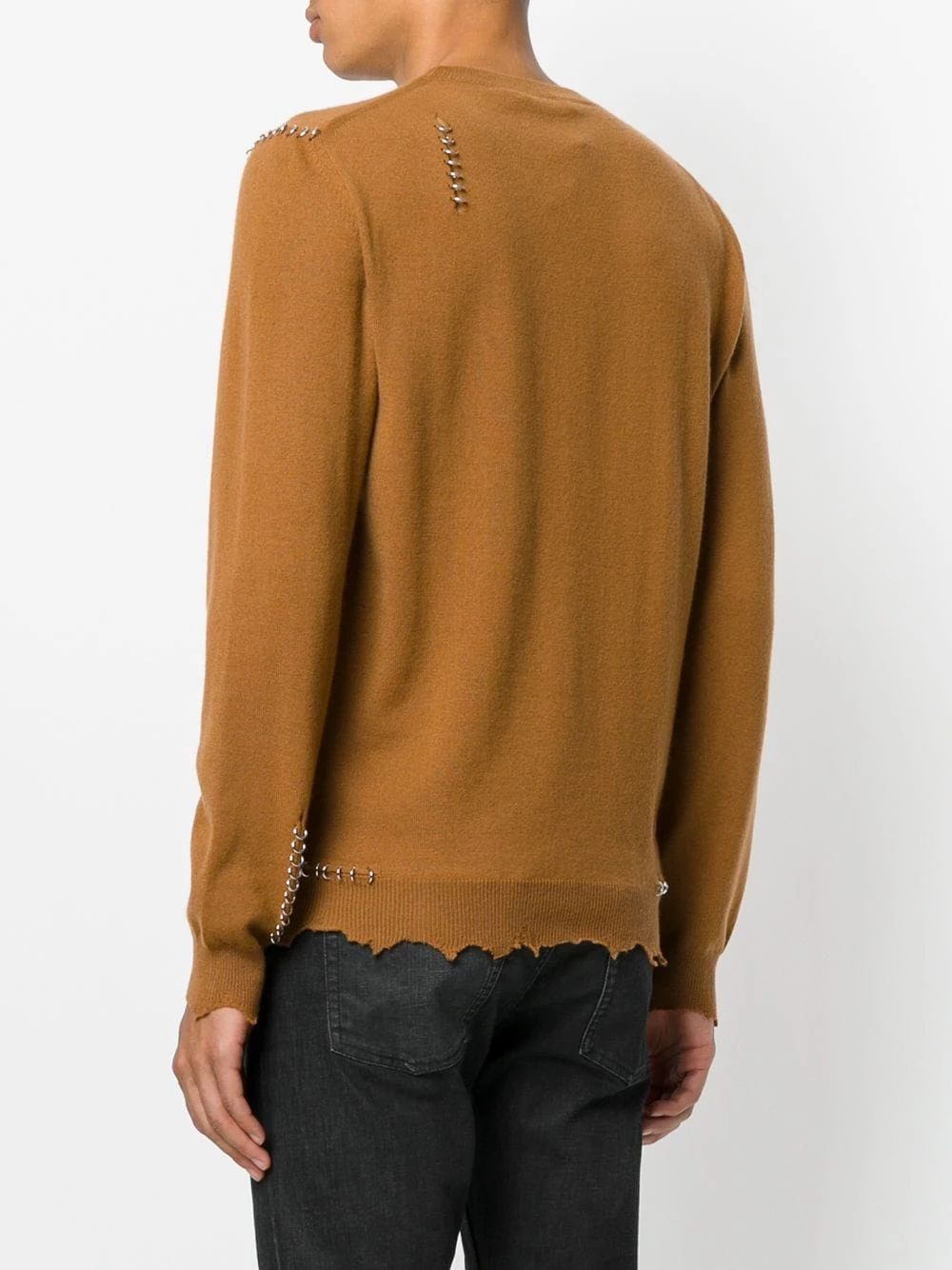 With a nod to Alexander McQueen’s rebellious aesthetic, this brown cashmere and wool blend jumper includes a ribbed crew neck, long sleeves and a ribbed hem and cuffs. This grunge-inspired piece from Alexander McQueen will be the perfect finishing touch to pared-back, off-duty ensembles.