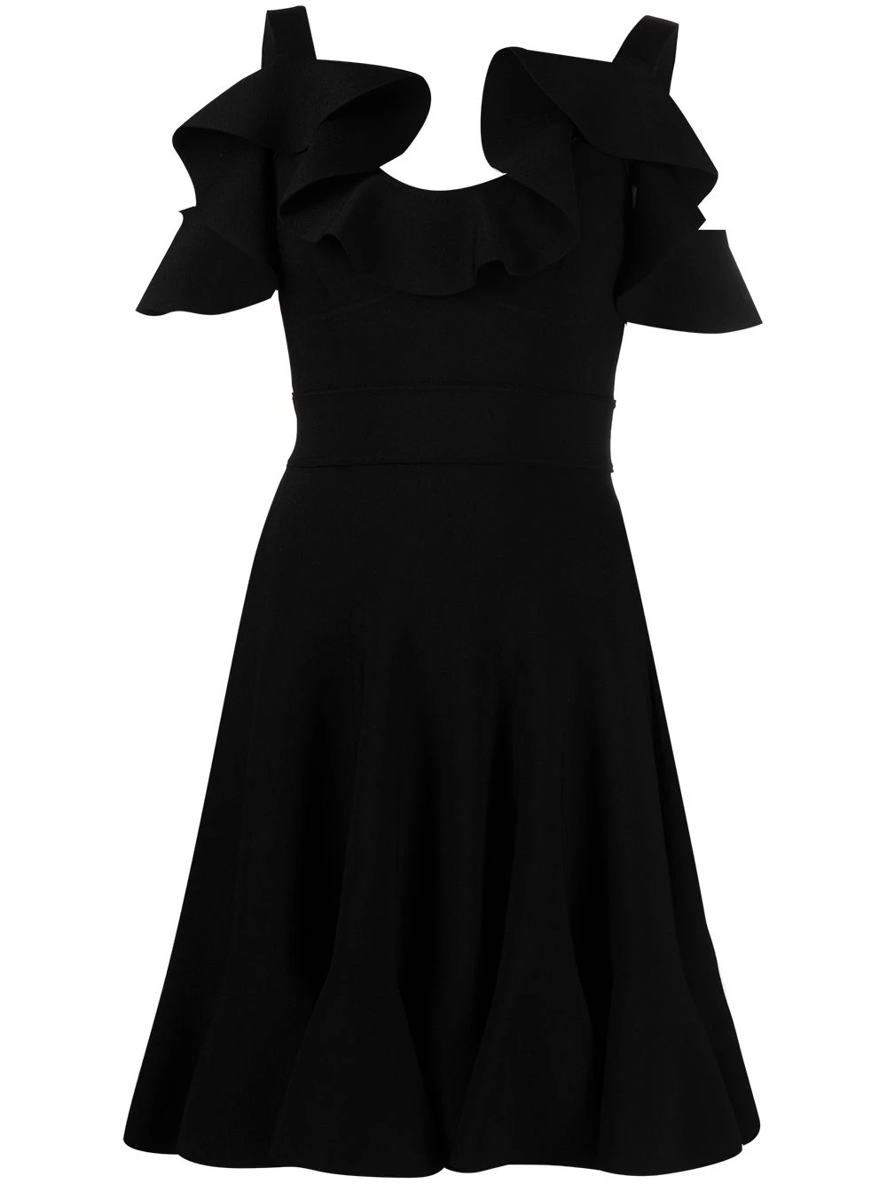 The ultimate LBD. In a deep black hue with a flared shape, this mini dress from Alexander McQueen is one for the history books. And your closet.