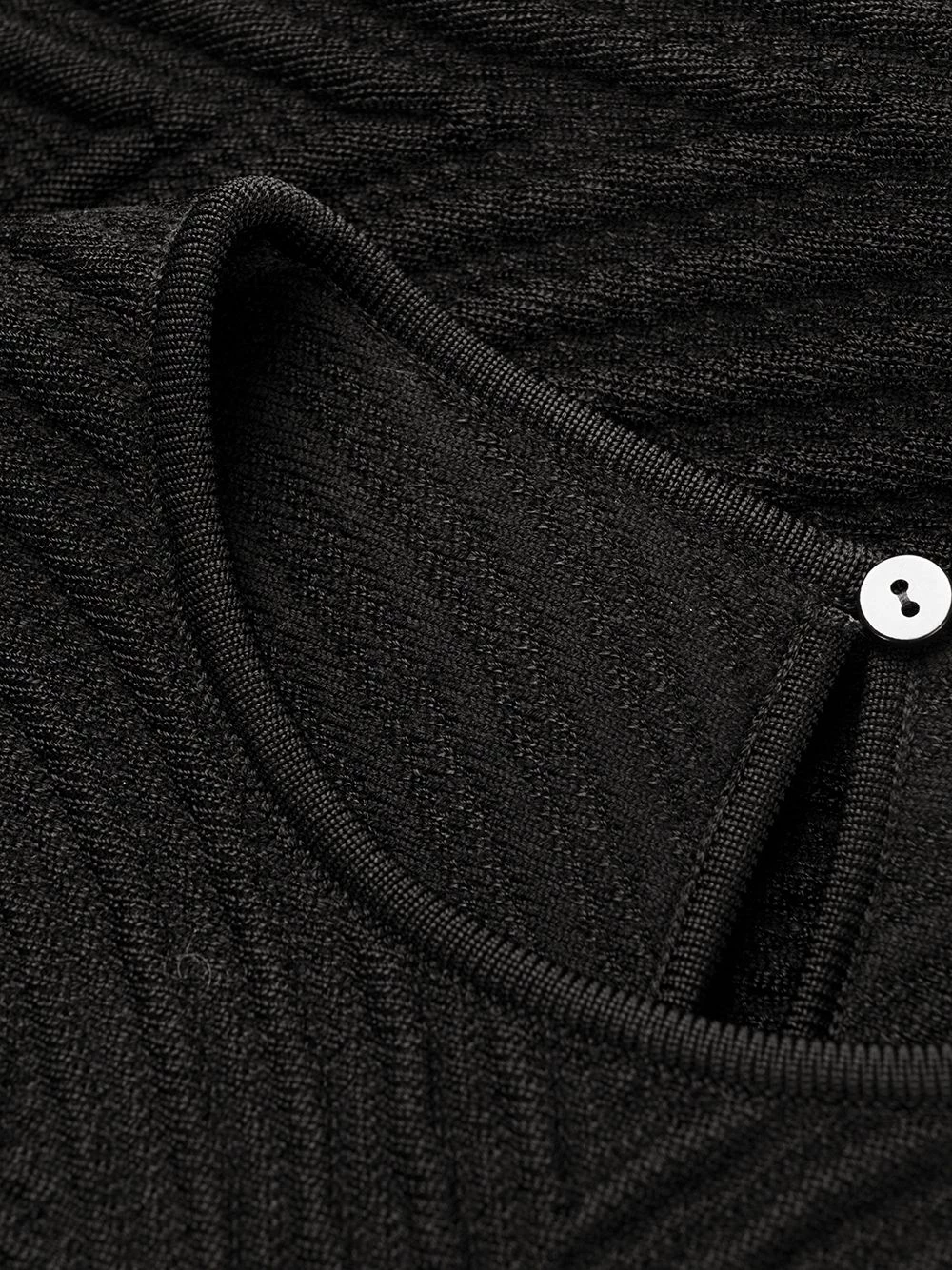Alexander McQueen knows good design. Fabricated from a soft wool-blend, this structured flared hem knitted dress is a perfect example of the label’s exquisite craftsmanship. Invest in the best.