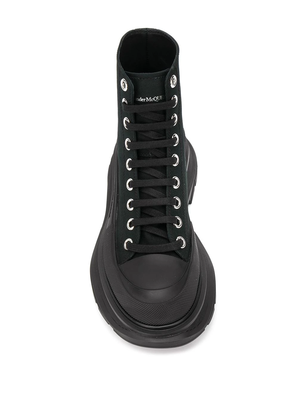 You’ll feel ready to take on the world once you put on these Tread Slick high-top sneakers from Alexander McQueen. The chunky platform sole tells people that you’re not one to mess with. They better move out of your way – you’ve got places to go and people to see. Featuring a lace-up detail, a high ankle, a rubber sole and a chunky platform sole.