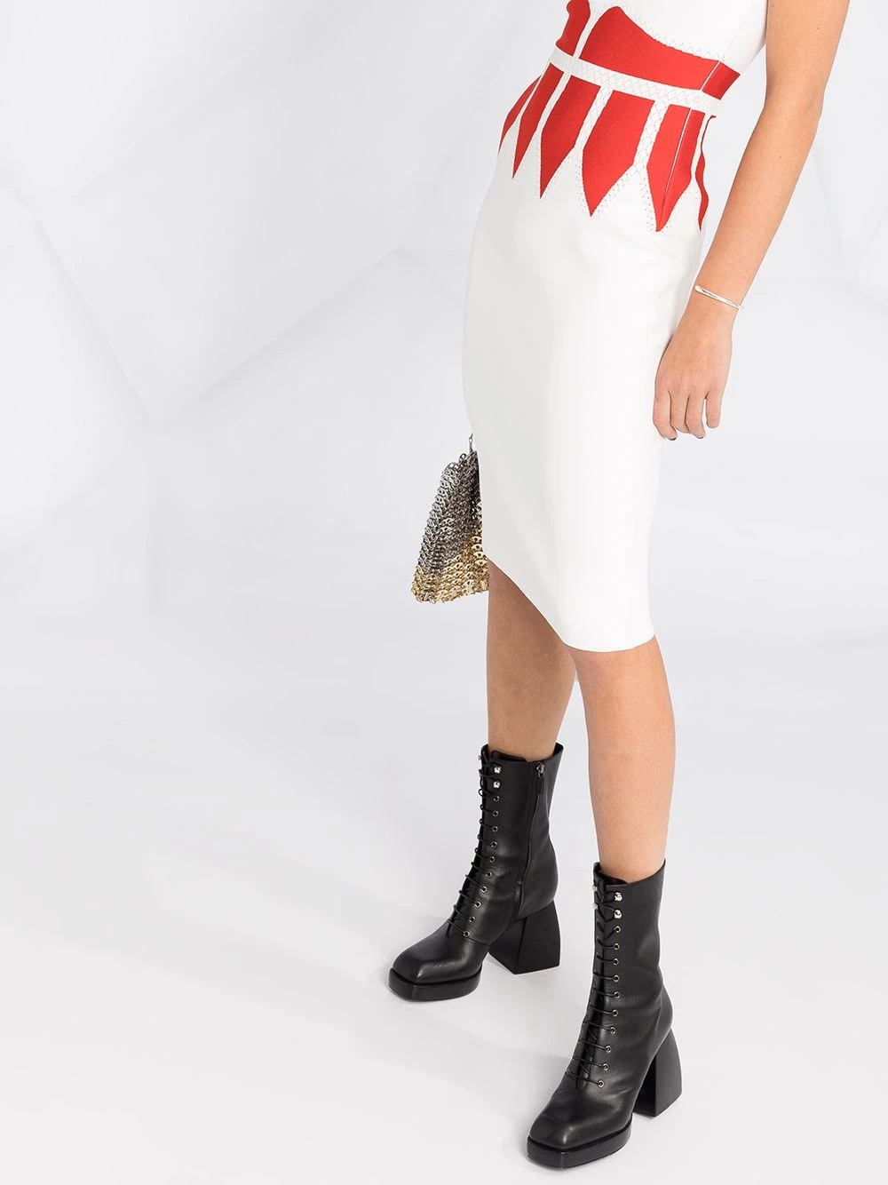 If you’re not sure what you’re wearing to your next special occasion, make it this Alexander McQueen dress. In a two-tone construction, this white and red fitted dress is a showstopper. Strut into the party with confidence.