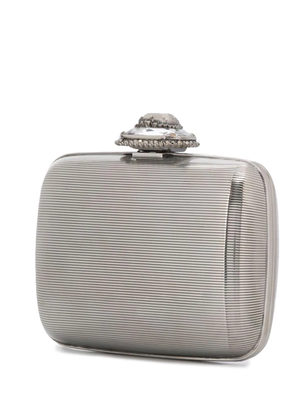Alexander McQueen replaces gothic, dark romanticism for classic feminine designs in the new collection, as showcased by this silver-tone branded clutch bag. Featuring a main internal compartment, a detachable chain strap and an embellished top closure.