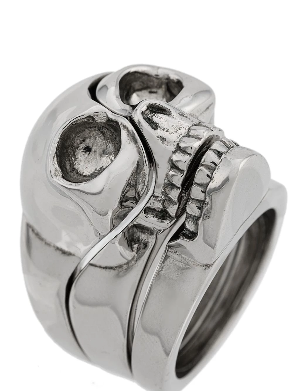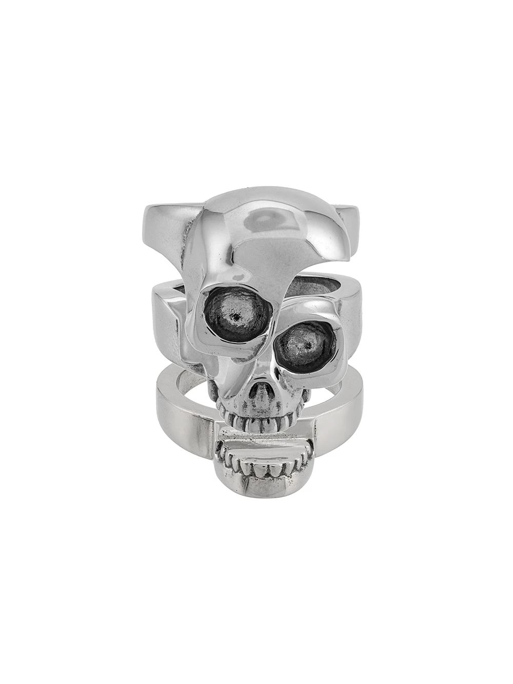 This Alexander McQueen skull ring is an assembled item which can be divided in three pieces, allowing you to play with the puzzling accessory. Symbol of the brand, the Gothic motif was created from silver-toned brass.