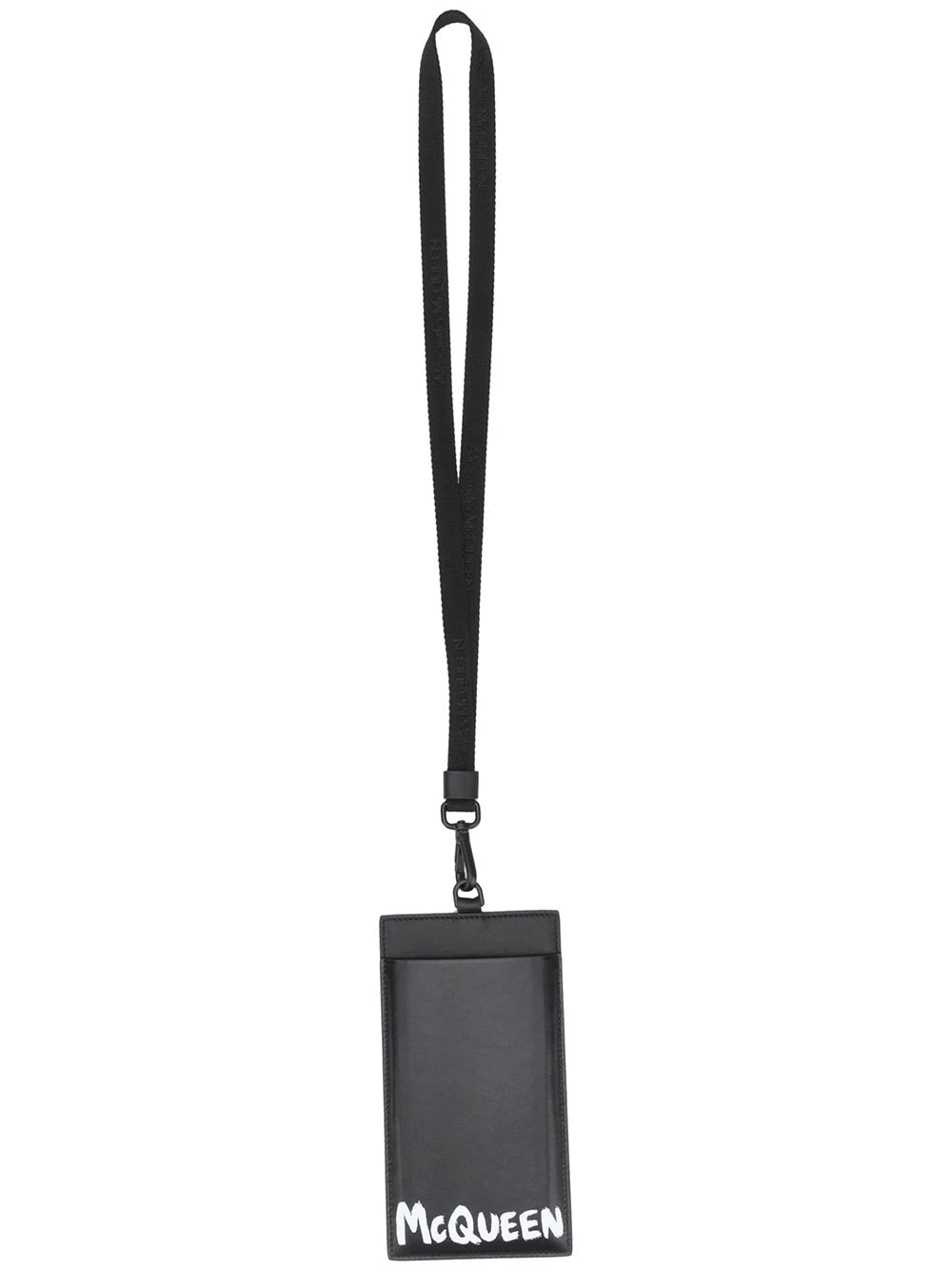 The credit card, gym card, and ‘free drink’ card. That’s all you’ll need for having a great day. Put them all inside this leather McQueen graffiti strap card holder, and you’re ready to go. So practical.