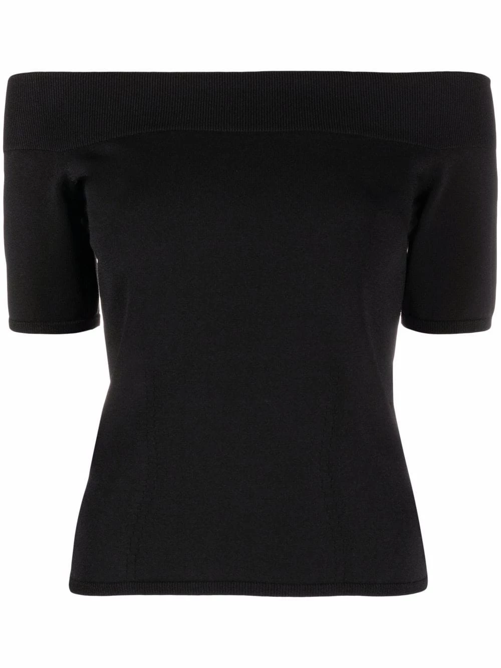 Keeping to a simple and sleek design, this Alexander McQueen T-shirt is presented in an off-shoulder style, showcasing the glamorous feel of the brand.