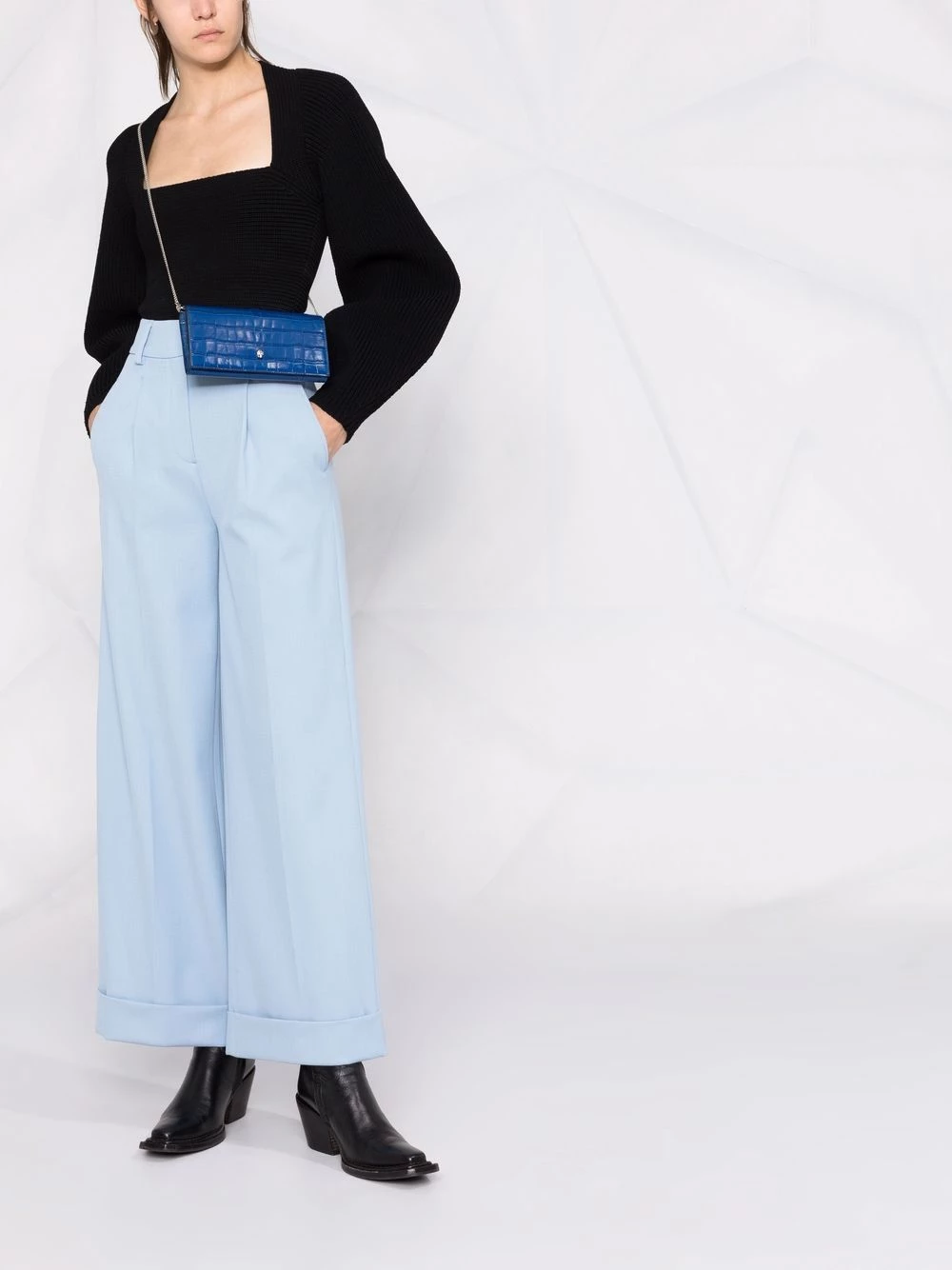 Alexander McQueen’s croc-effect leather crossbody bag is accented with the brand’s signature skull charm at the front. The emblem debuted as part of founder Lee McQueen’s 1992 graduate collection.