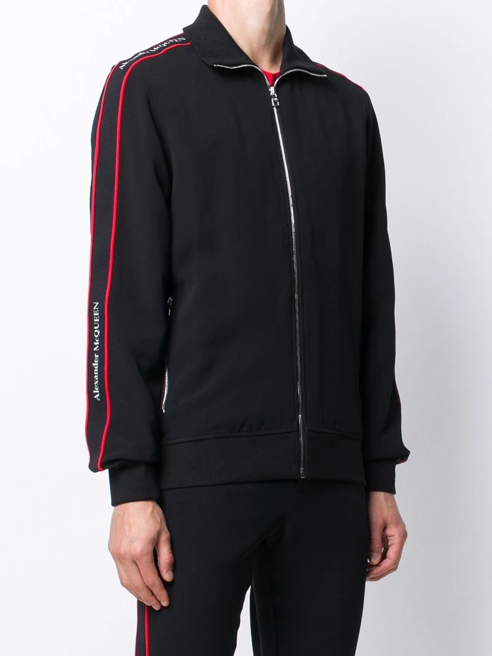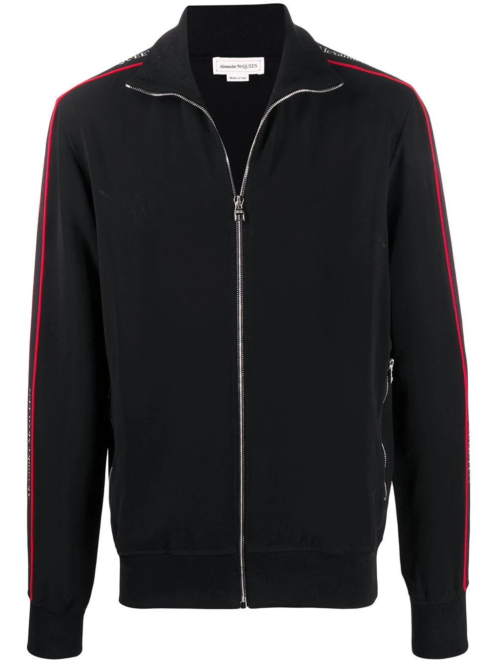 There’s no basic in the Alexander McQueen repertoire. This black cotton jacket has an easy zipped fastening on the front and logo strap appliqués on the arms. Off with the basic, in with your style.