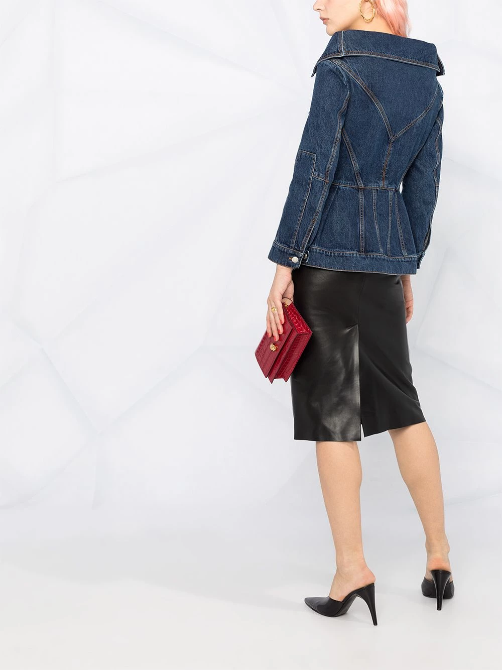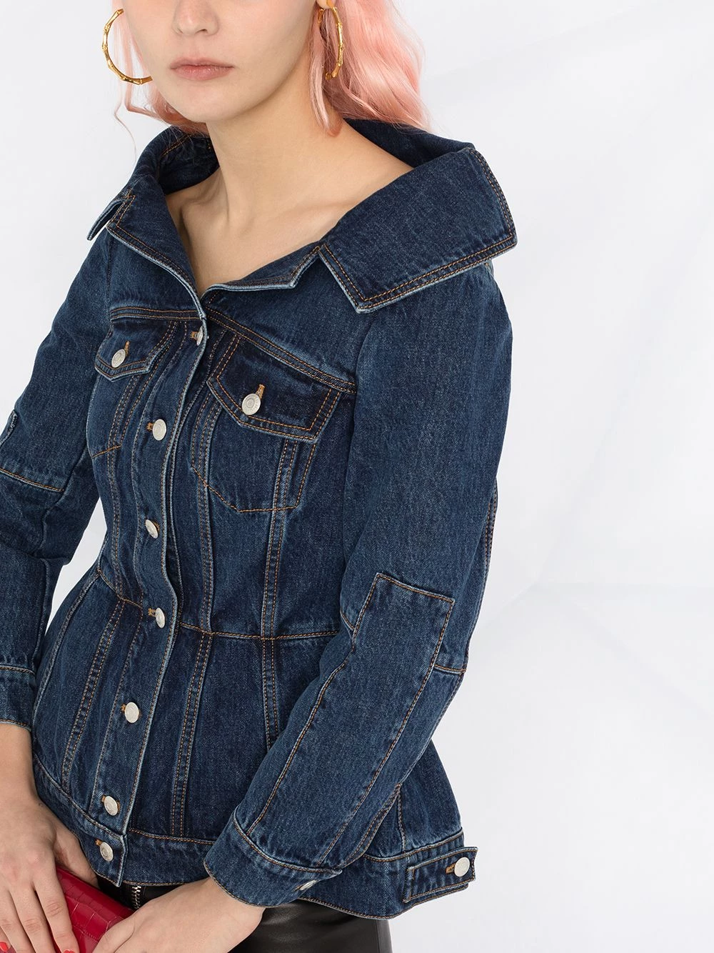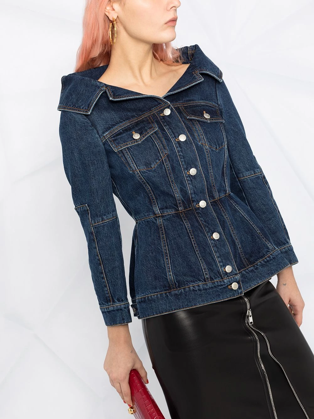 Denim, but not as you know it. With a wide-collar design, this denim jacket from Alexander McQueen is anything but conventional. Dare to be different.