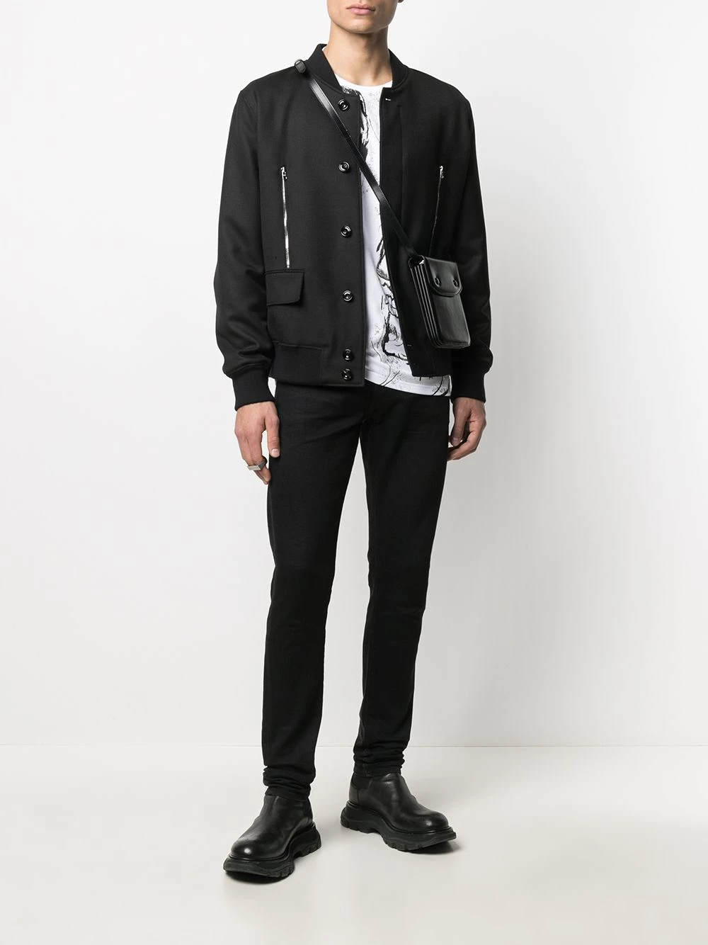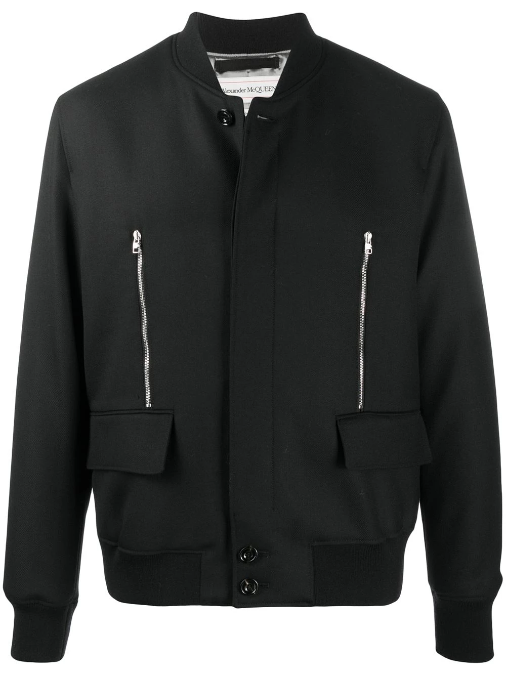 Uplift your casual looks with this black bomber jacket from Alexander McQueen. Thanks to its classic silhouette updated with zip details to the front and to the rear, this bomber jacket will do the trick. Zip it.