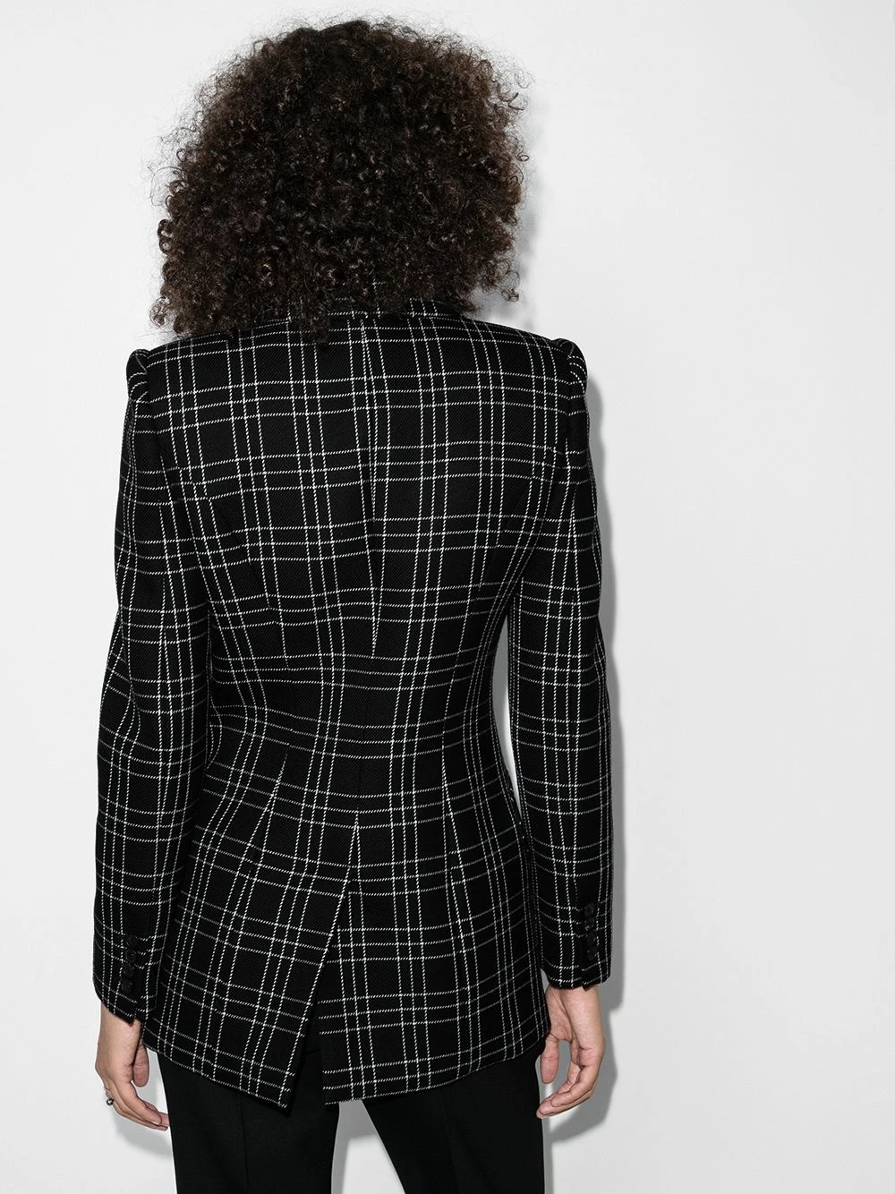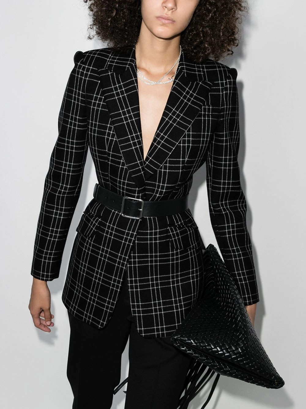 Thinking about tailoring your wardrobe in a different way? Smarten up and exude class in this suave checked pattern blazer from Alexander McQueen that will have you feeling confident in its structured shoulder silhouette. Suits you very well.