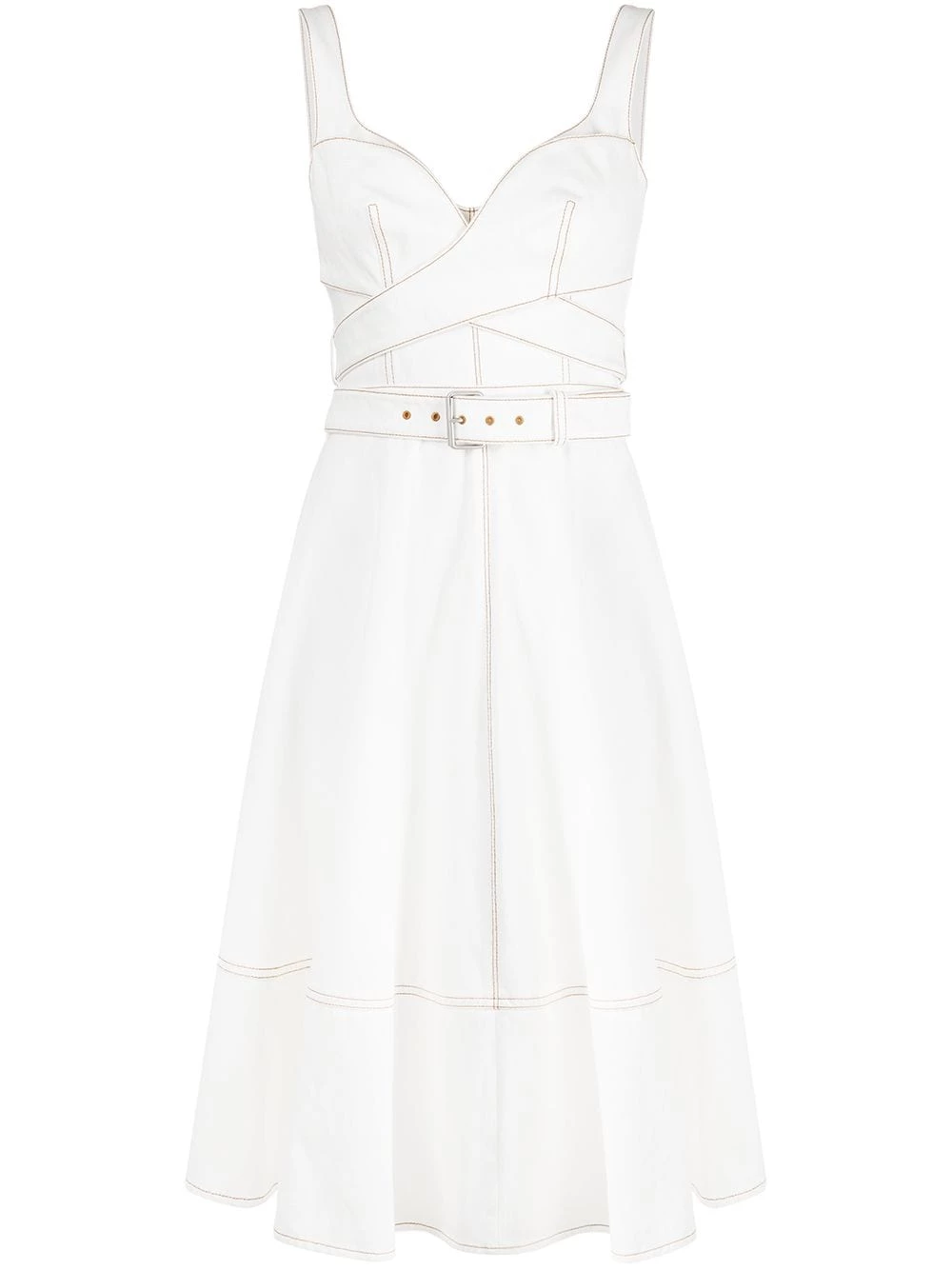 Delicate and sweet. This dress from Alexander McQueen features an all-over exposed-stitch outline for a beautiful finish. Crafted from white cotton, it makes the perfect staple piece.