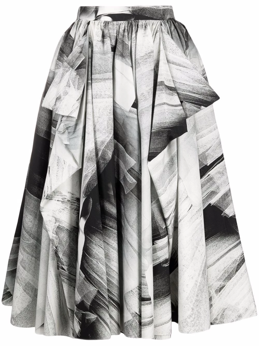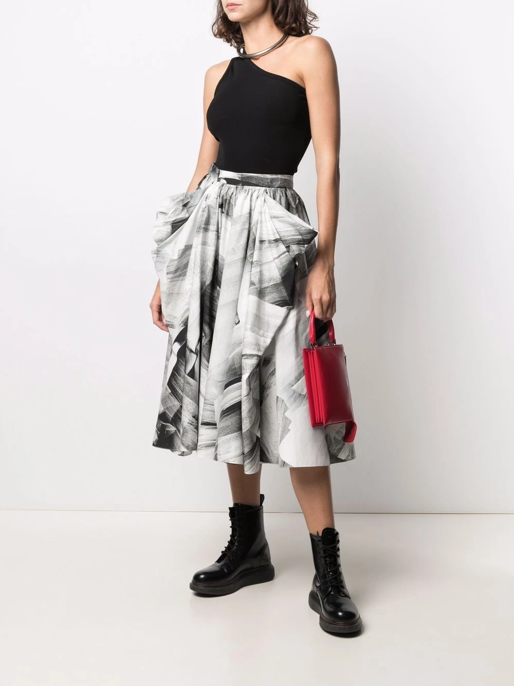Show off your inner artist with this Alexander McQueen skirt design. Featuring a two-tone abstract pattern print, it’s a stroke of genius. Get ready for compliments.