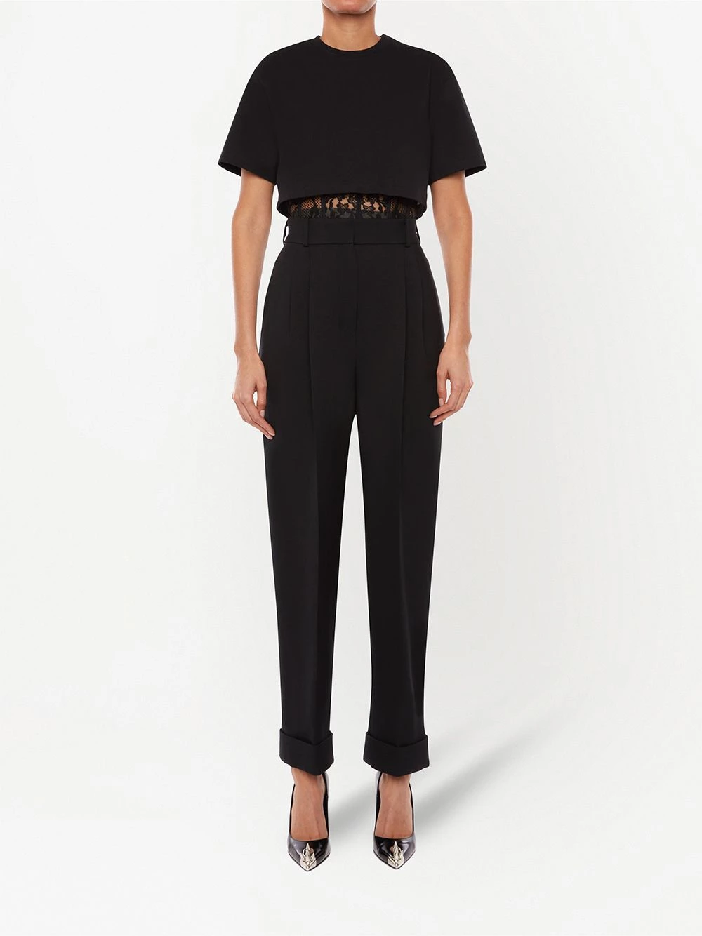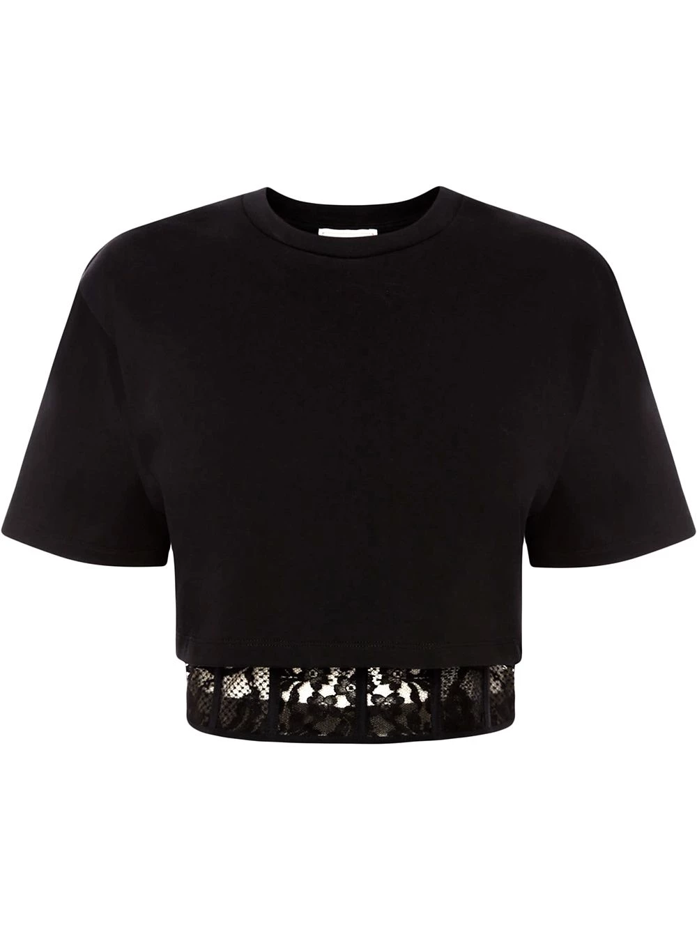 Looks can be deceiving. At first glance, this Alexander McQueen piece may look like your classic T-shirt, but the lace detailing makes it clear that it’s your new favourite. More than meets the eye.