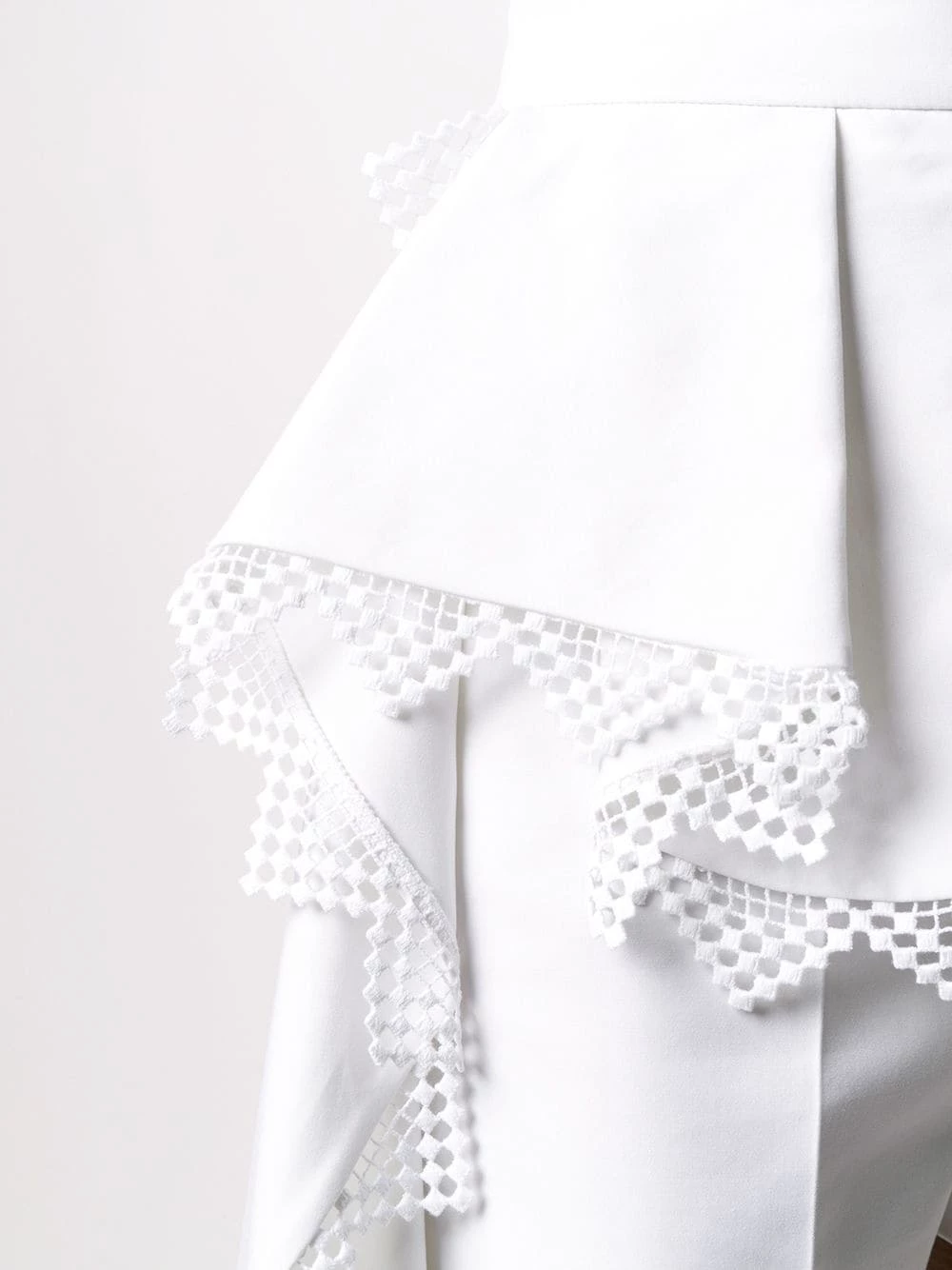 Leave it to Alexander McQueen to upgrade your wardrobe with elegantly bold pieces. Crafted from cotton, these white shorts from Alexander McQueen are decorated with a peplum frock and a lace trim. You’re in good hands. Featuring a high waist, a concealed front fastening and a short length.