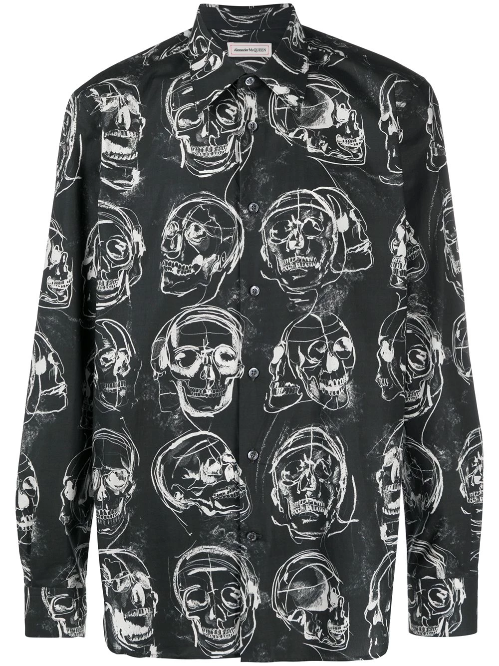 When it comes to skeletons in your closet, make sure they’re Alexander McQueen. Enveloped in illustration-style skull motifs, this black and white cotton shirt makes a striking addition to your wardrobe. There’s no time for boring shirts.