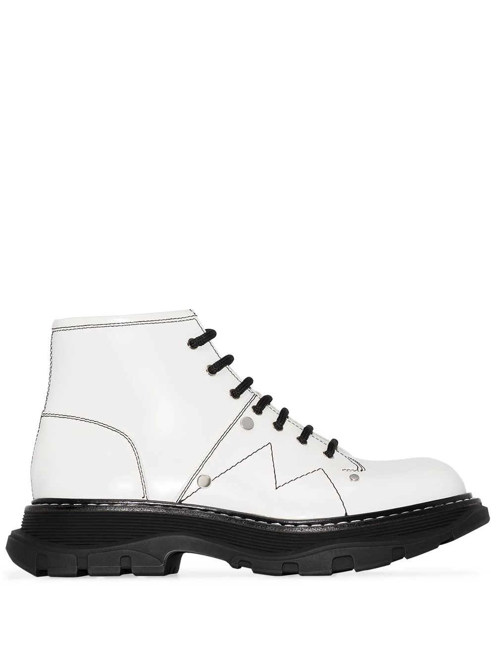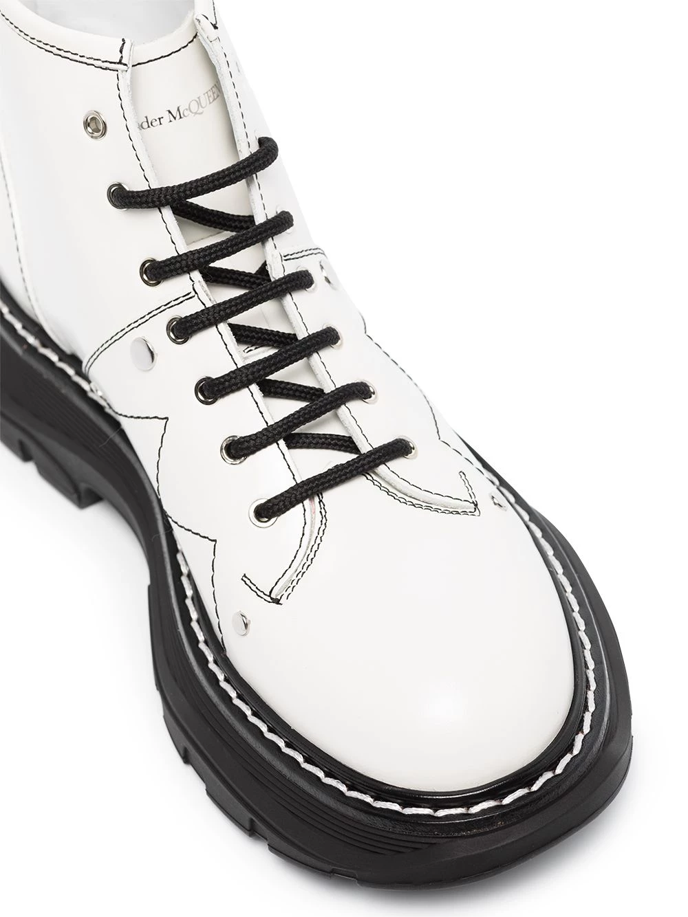 These white Tread boots were made for stomping and thatโs just what theyโll doโฆ Honestly, these are also pretty good for walking, skipping and whatever it is you can imagine. But we advise you to try a little stomp, if you can. Itโs way more fun. Alexander McQueen’s honour.