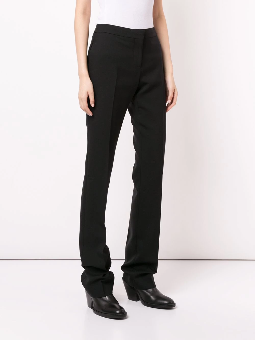 Home to the edgy and mysteriously alluring, Alexander McQueen is an encounter of finesse and duskiness. This piece is a fine example of that. Showcasing these black wool & silk classic straight-cut trousers from Alexander McQueen featuring a hook and zip fastening, side slit pockets and a tailored design.