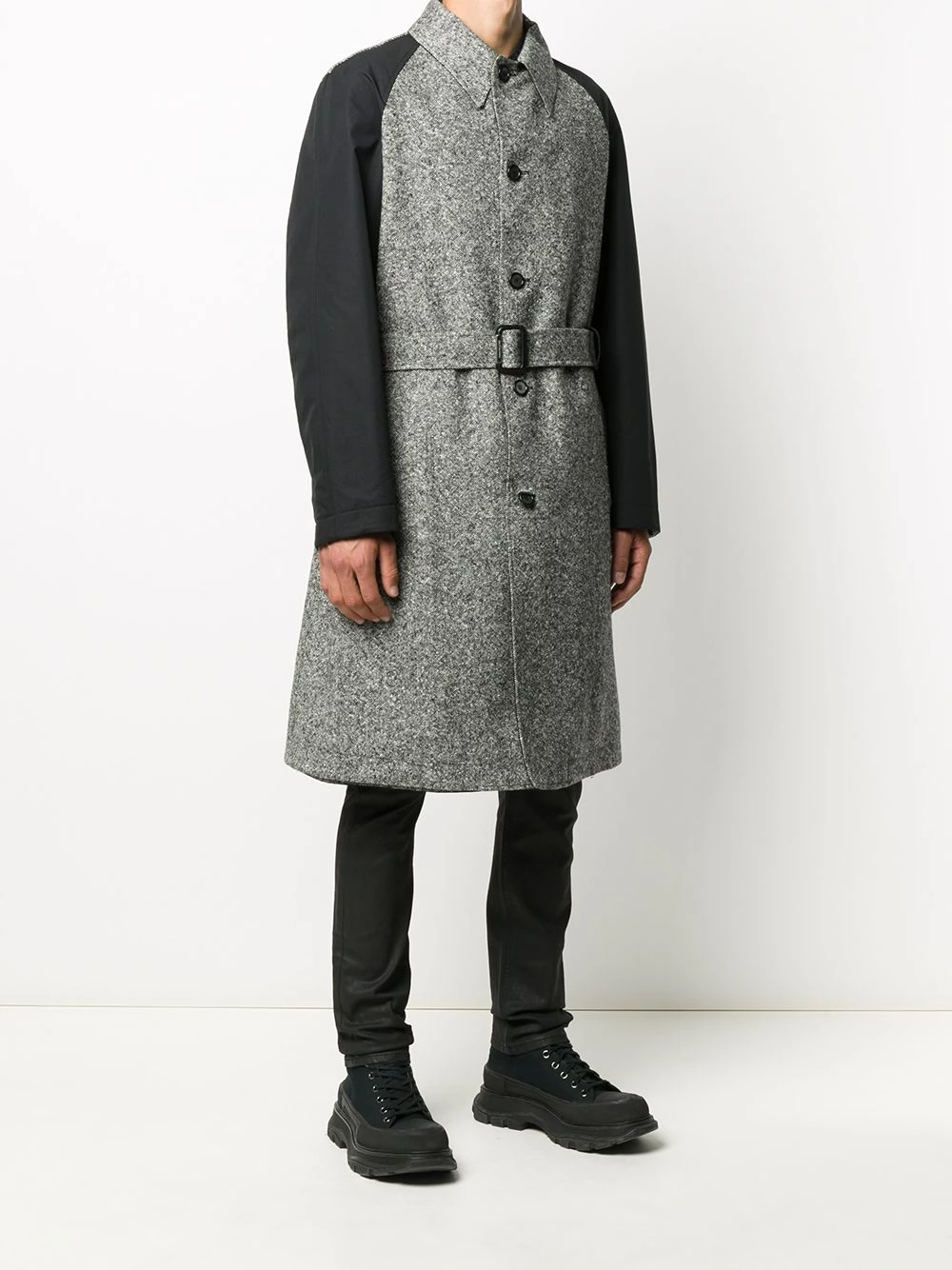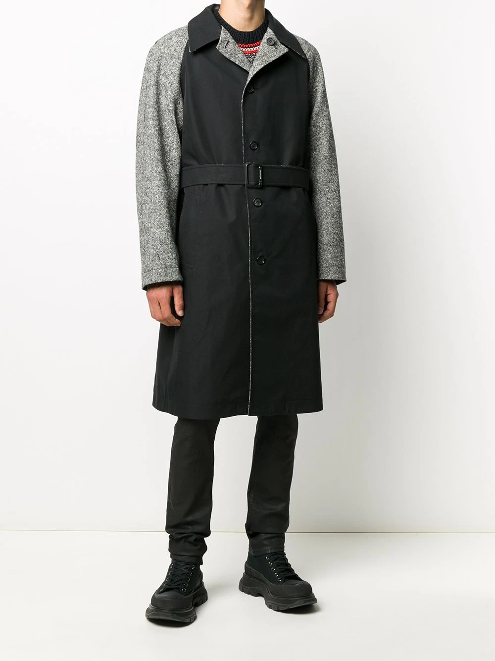 Don’t let your outerwear be an afterthought. Instead, pull on this contrast-sleeve coat from Alexander McQueen. Stay warm in style.
