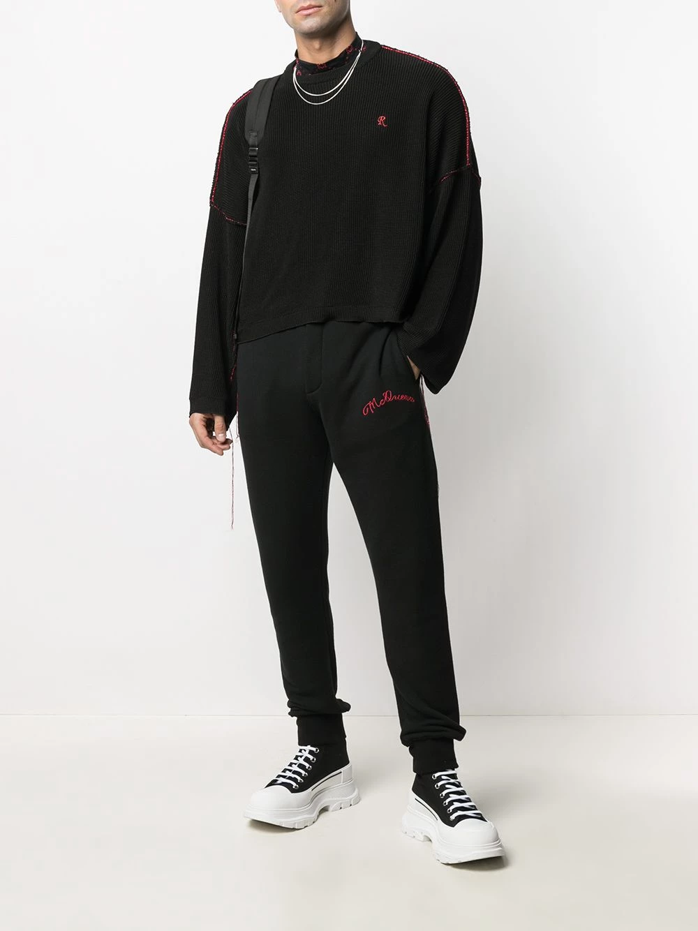 If comfort is your top priority, youโve come to the right place. These logo track trousers from Alexander McQueen will have you lounging in style in their 100% cotton composition and cuffed-leg design. As a bonus, you get to look your best as well – win-win.