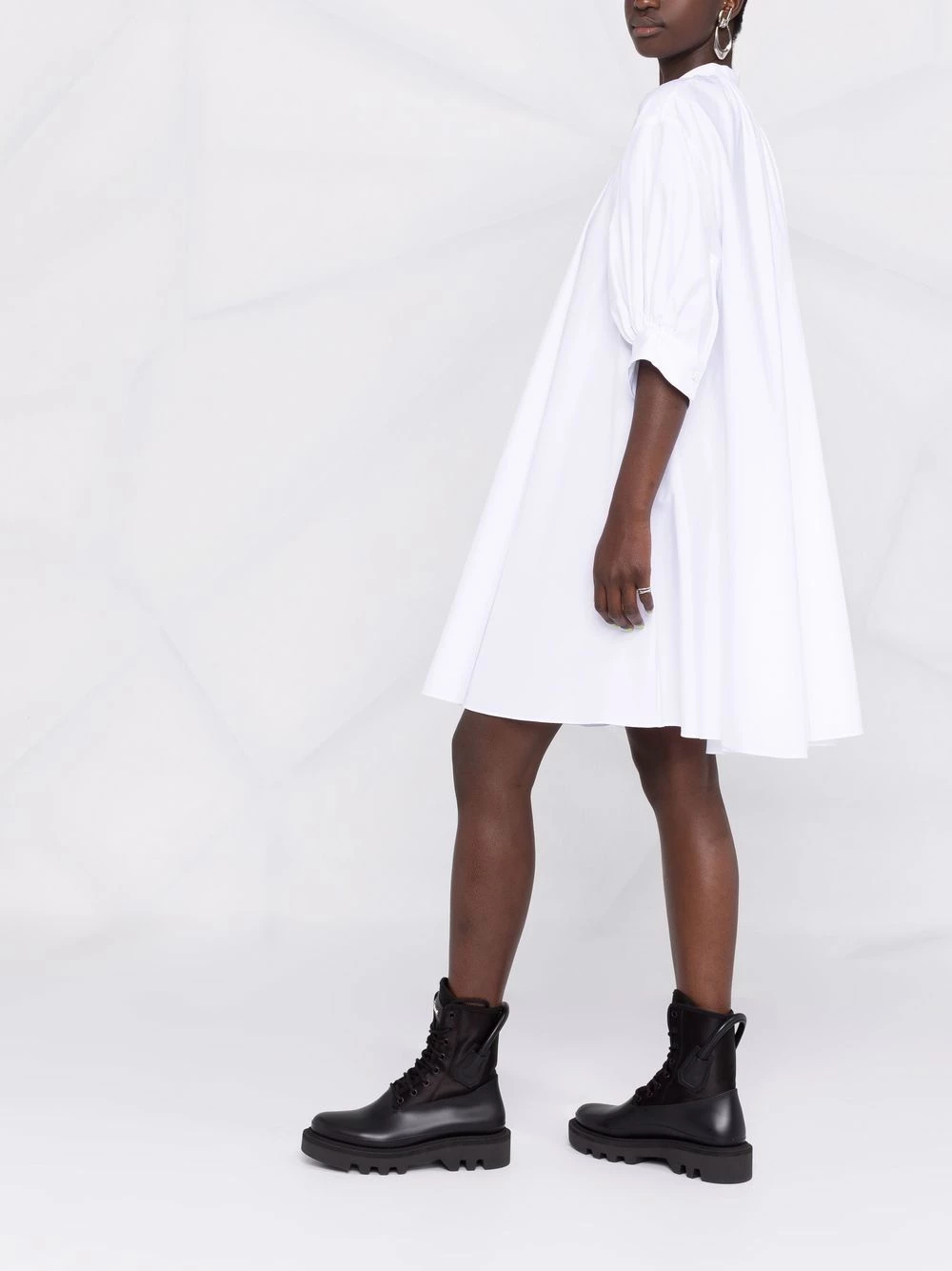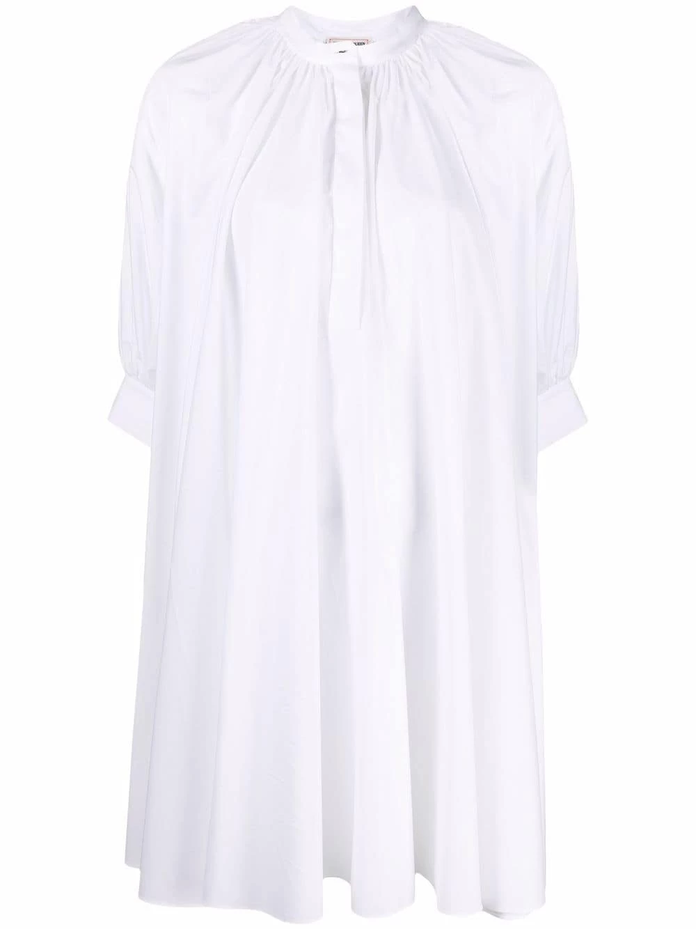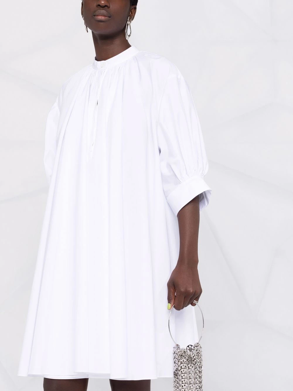 Alexander McQueen switches up the brand’s usual dark and moody colour palette for a lighter aesthetic as showcased by this white dress. Delicate pleats keep in line with the label’s penchant for the romantic.