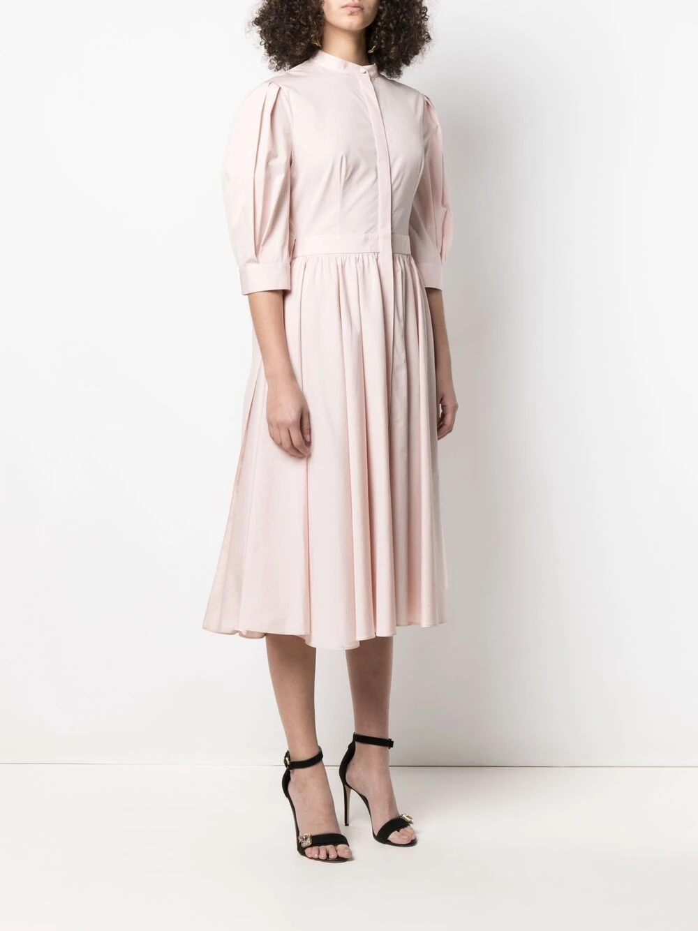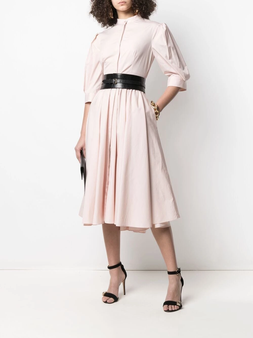 Struggling to consider what to wear today? Alexander McQueen is never a bad idea and after laying eyes on this pink flared midi dress you’ll find it easy to go ahead and button into it yourself. Elegance made effortless.