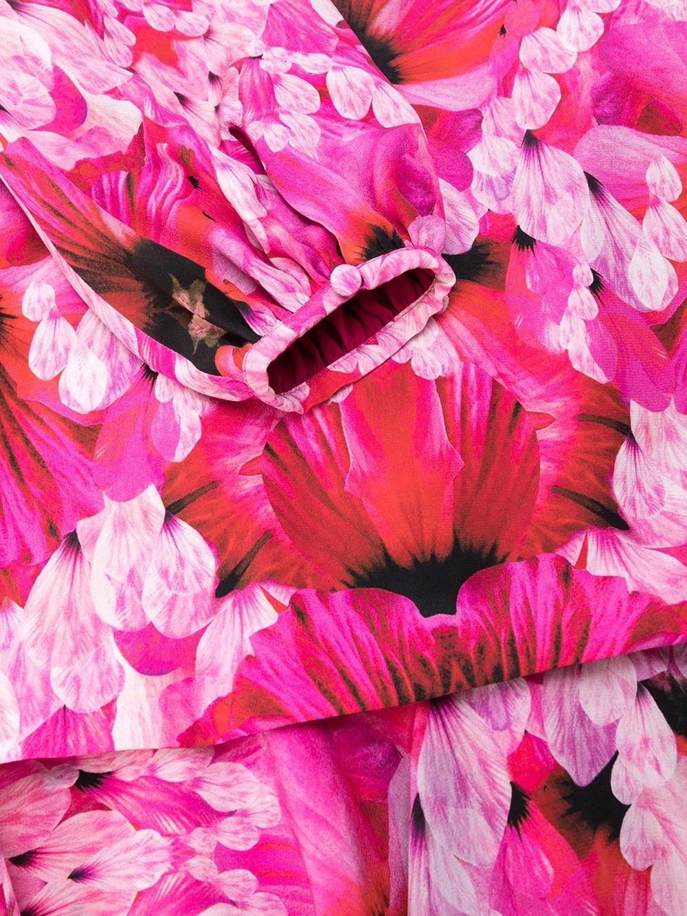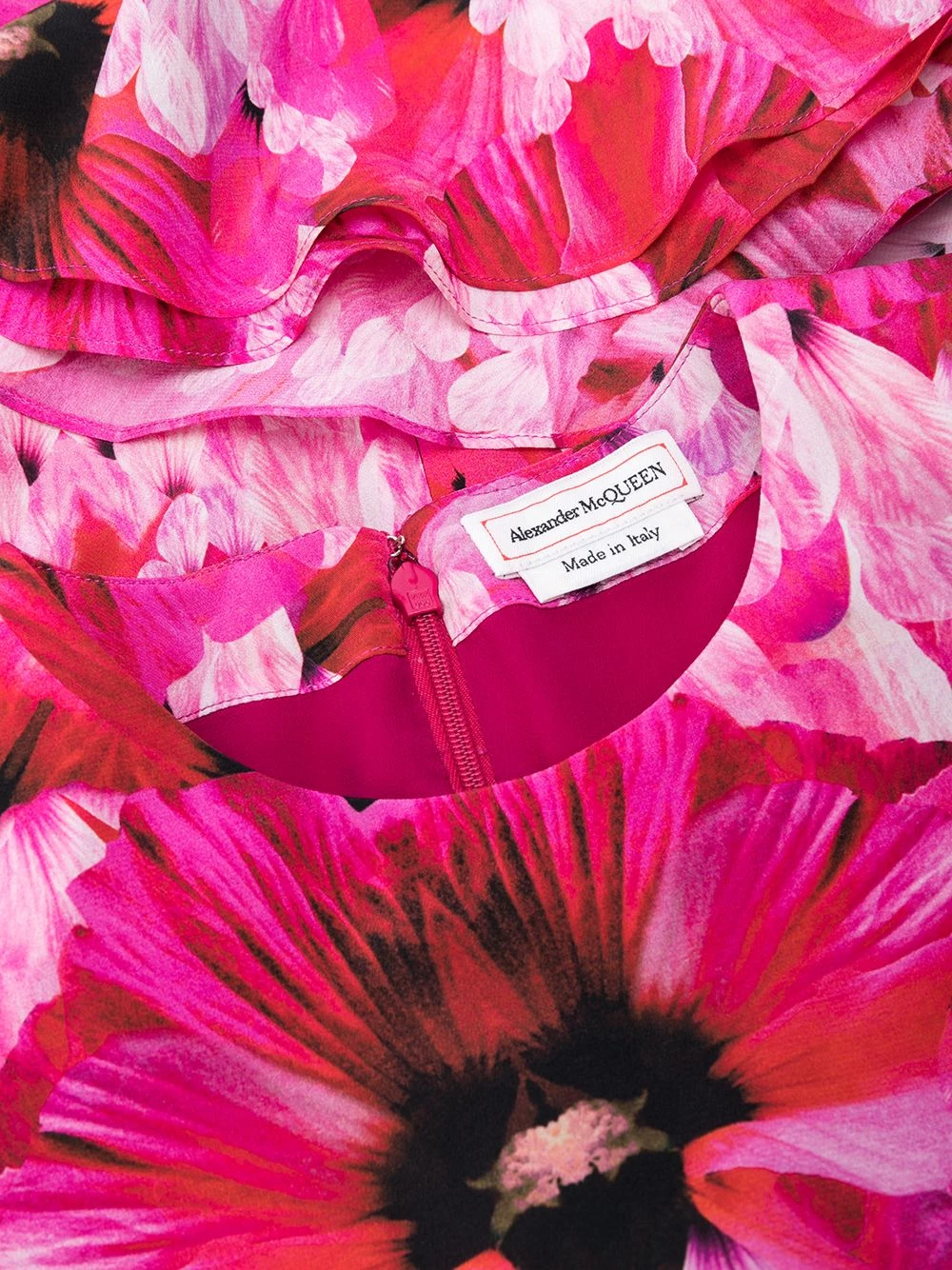 Just like Tinkerbell, you need applause to live. Well, with this orchid pink silk floral print ruffled dress from Alexander McQueen you’ll be immortal. People just won’t stop clapping. Clap, clap! Featuring long sleeves, button cuffs, a round neck, an invisible back zip fastening, a ruffled hem and a short length.