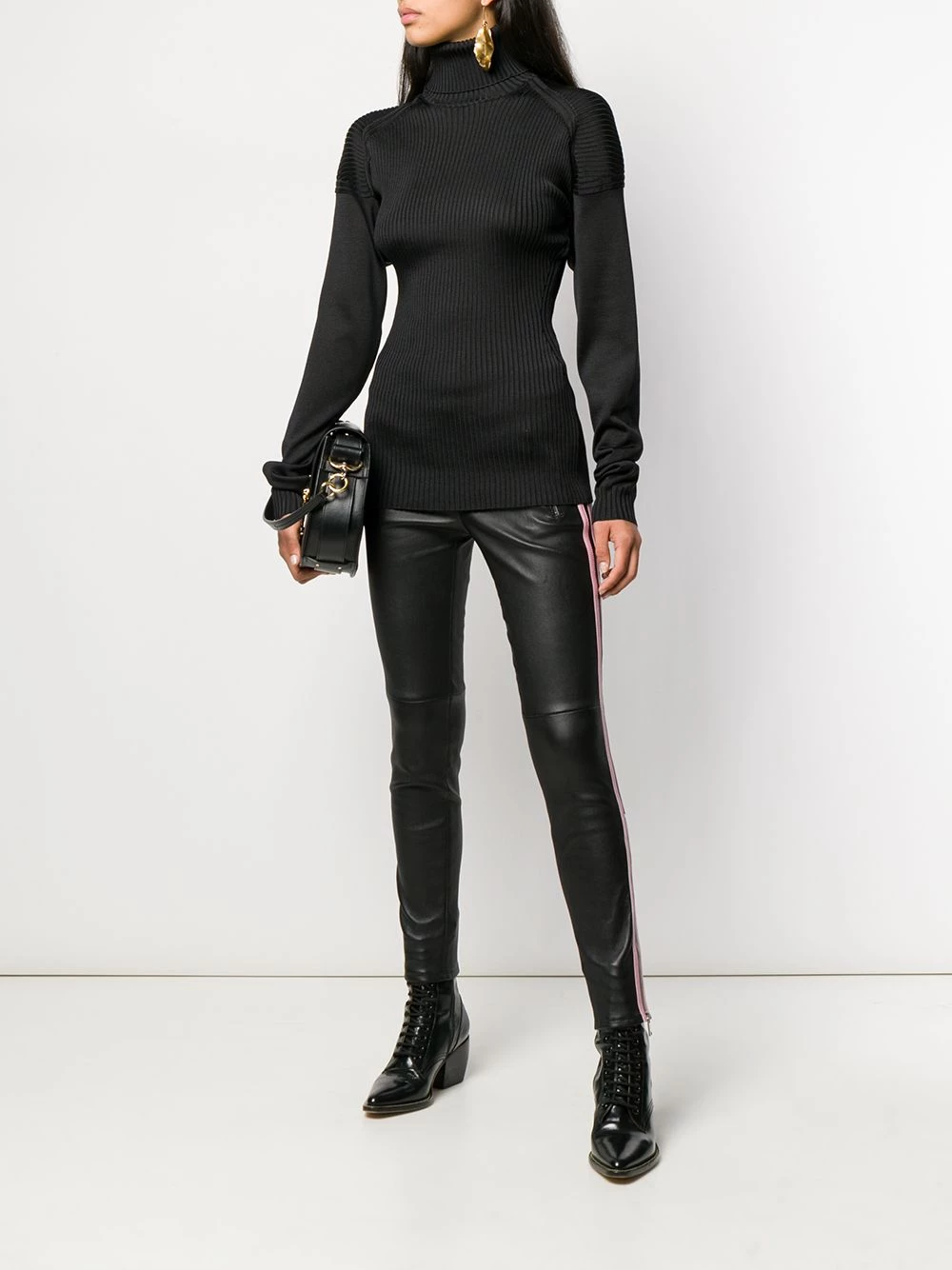 You can always count on Alexander McQueen to bring the glamour. These side-stripe detail cropped trousers are a prime example as to why. Feel your confidence levels rise. Featuring an elasticated waistband, front zipped pockets, a high waist, a side zip fastening, a skinny fit, a cropped length, ankle zip details and striped sides.