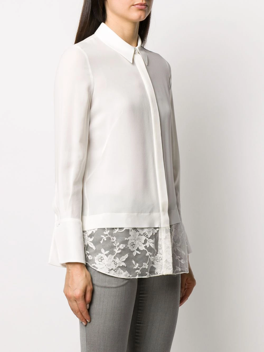 Delicate and feminine, this lace detail blouse is the perfect choice. In an elegant cut, it exudes sophistication. Alexander McQueen is here to update your wardrobe. Featuring a collar style, a front button fastening, long sleeves and button cuffs.