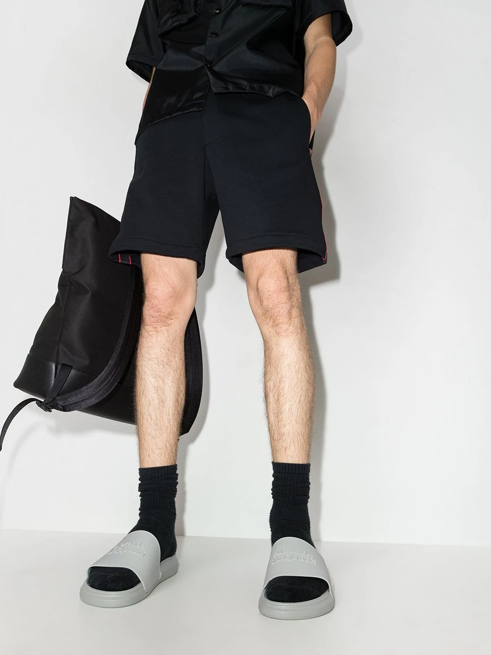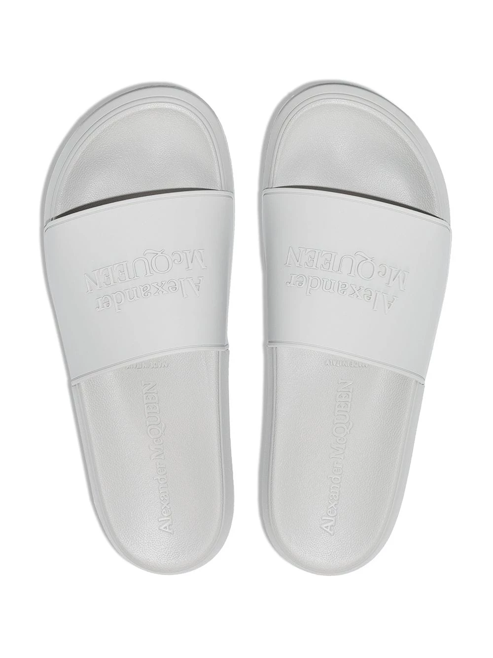 Stepping down from its usual exuberant aesthetic, Alexander McQueen presents the Pool slides. Made of rubber for a water-resistant finish in a versatile grey hue, this pair is decorated with a tonal raised logo at the toe strap for an instantly recognisable look.