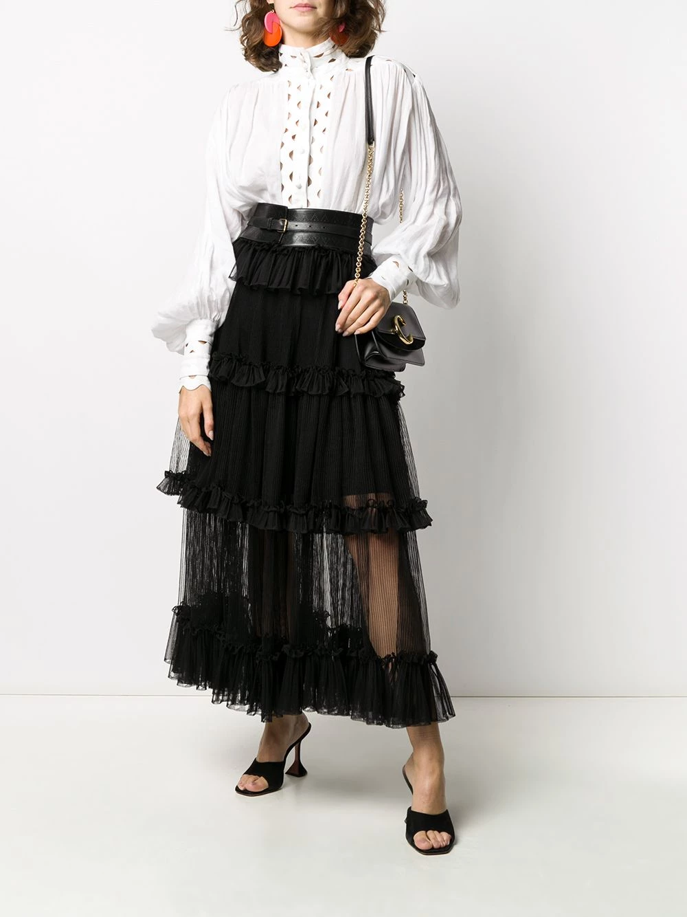Sure, you can play it safe and opt for your go-to LBD as your outfit tomorrow’s night out. Or you can change the game and wear this sheer panel tiered skirt from Alexander McQueen instead. Not that hard of a choice, right?