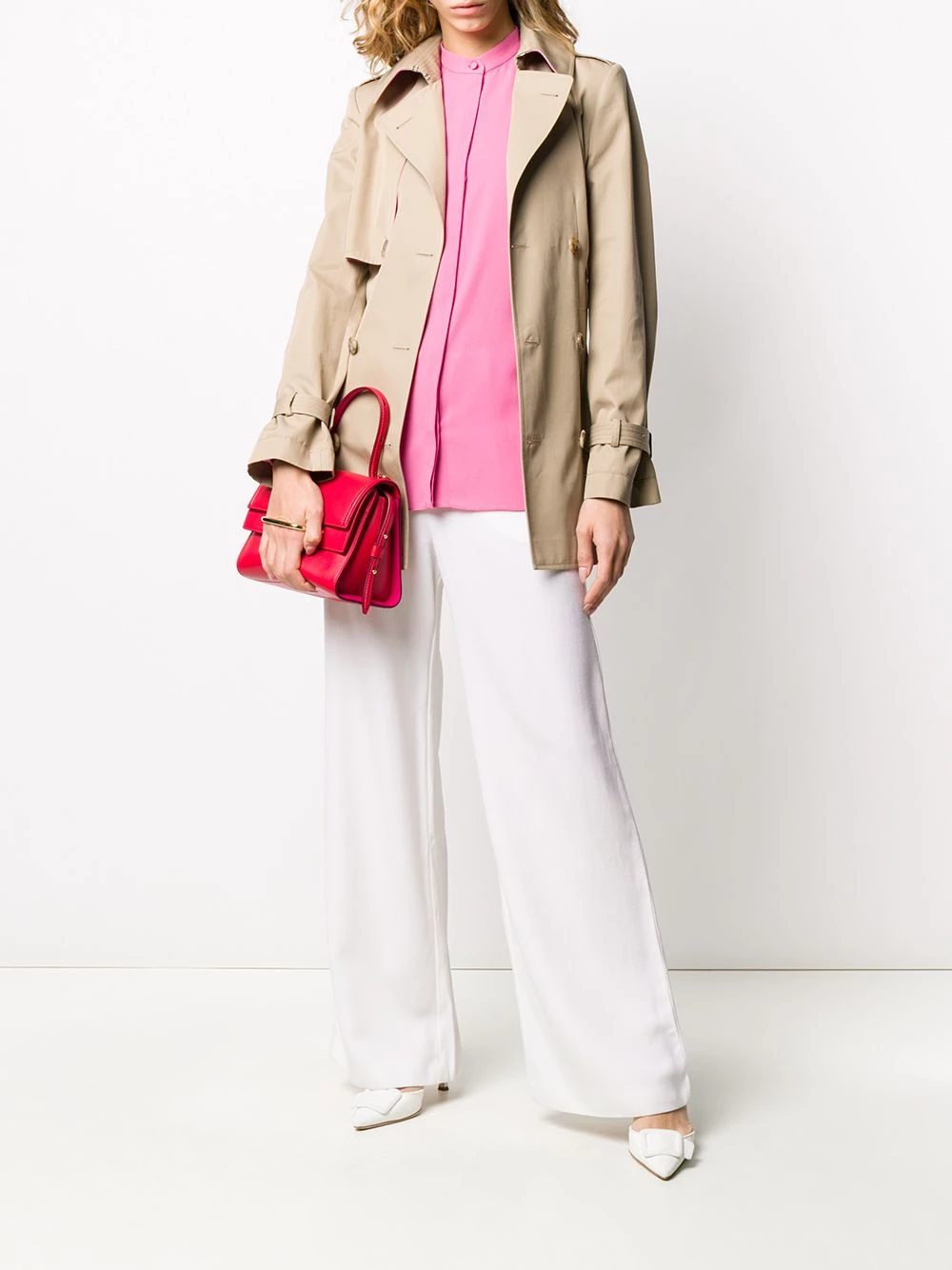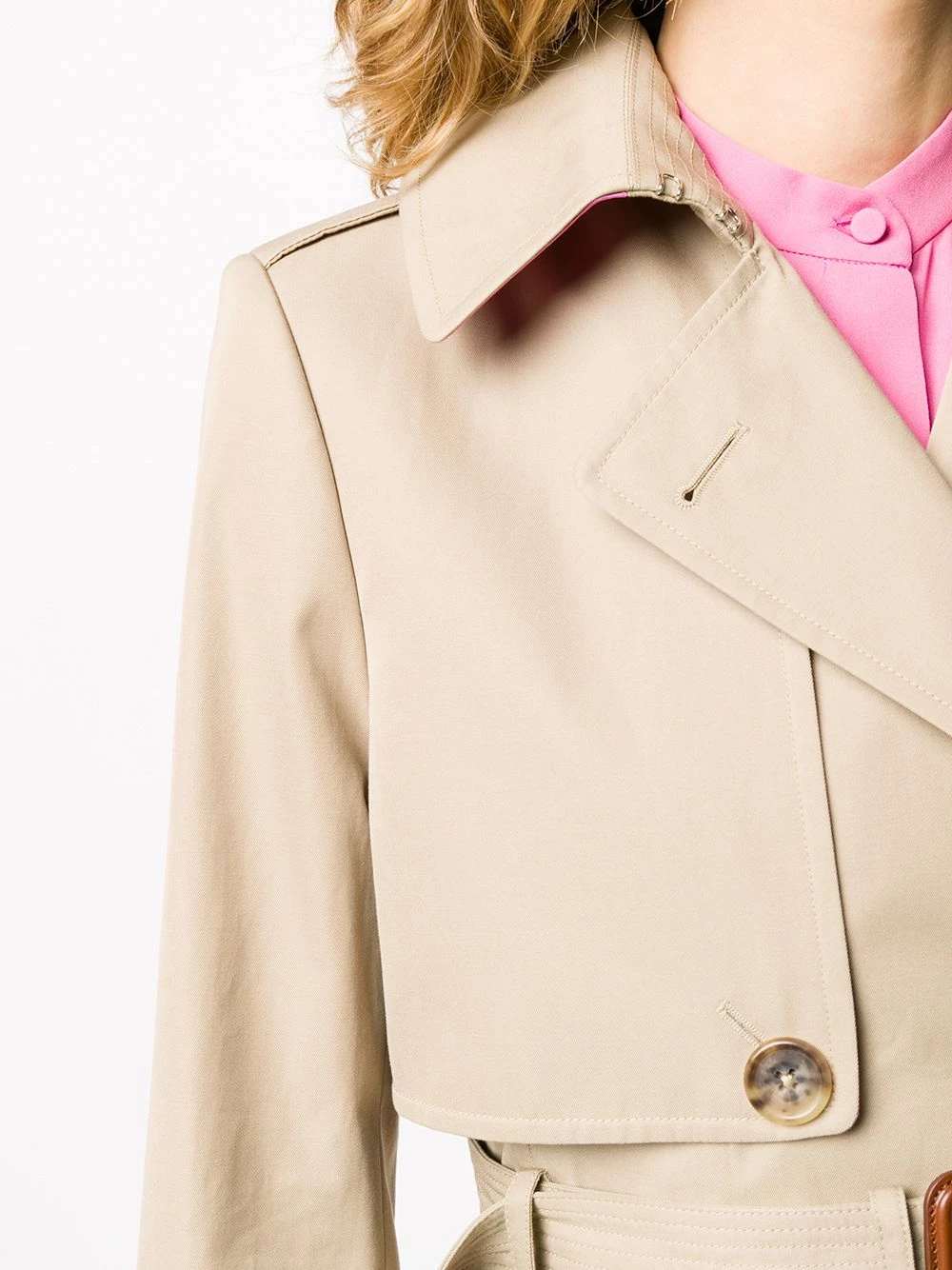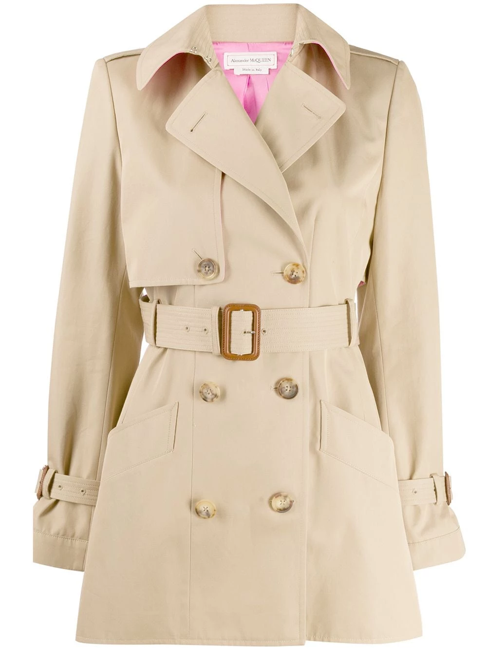 Trench coats will never go out of style. This beige one from Alexander McQueen is presented in a shorter length than typical, with all the characteristics of a classic longer style. So it’s different, but still timeless as can be. Featuring notched lapels, epaulettes on the shoulders, a storm flap, a double breasted front fastening, a button fastening, a belted waist, two front pockets and long sleeves.
