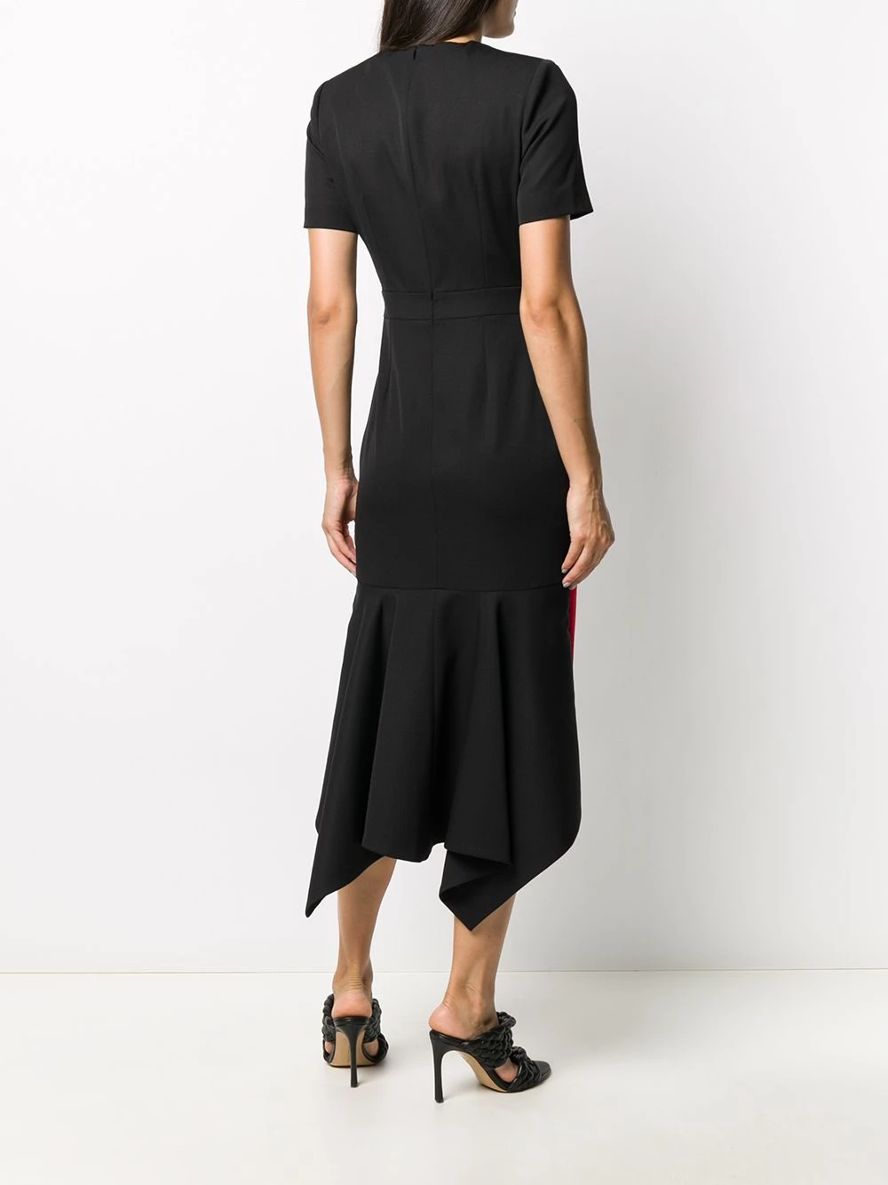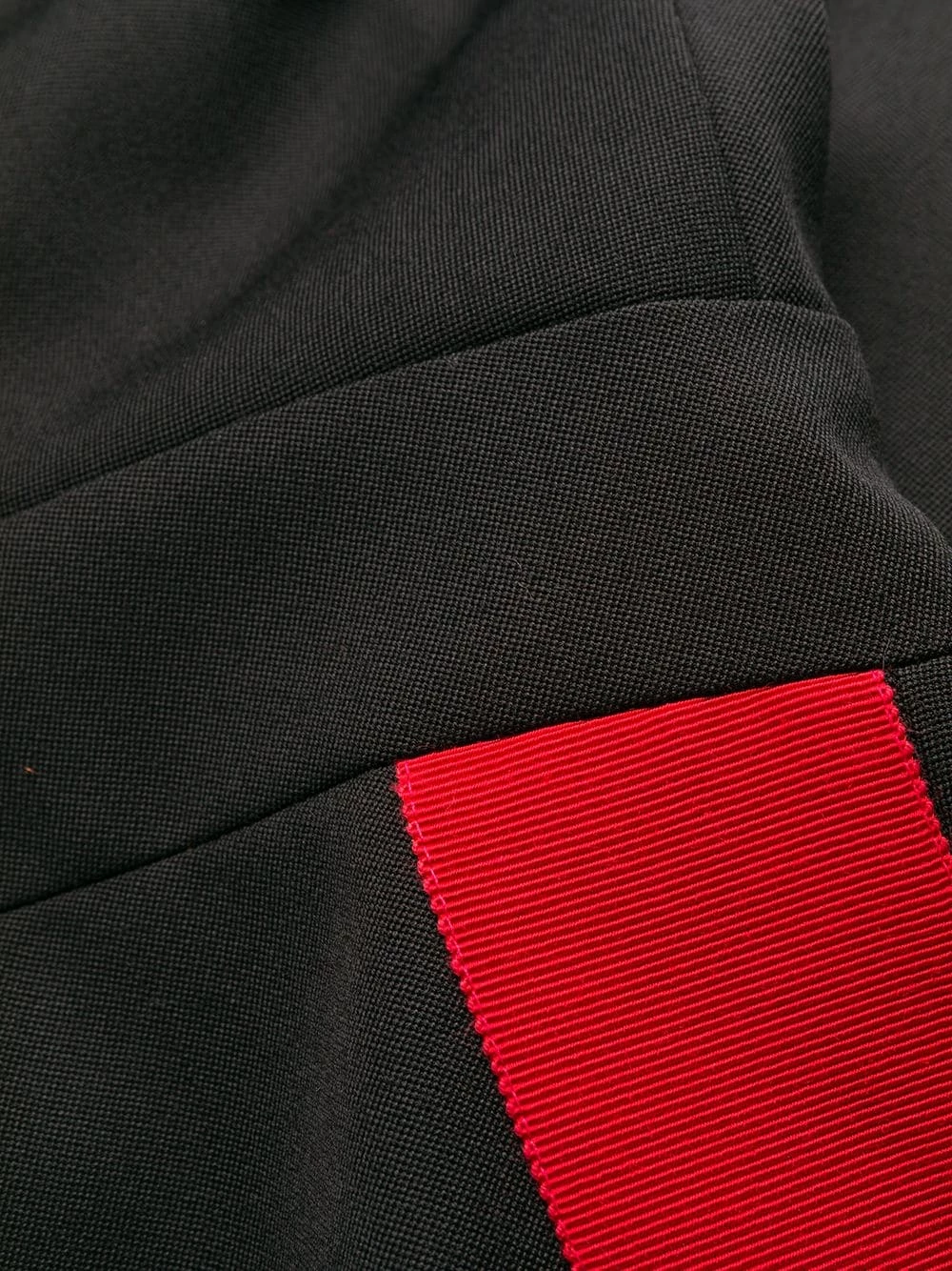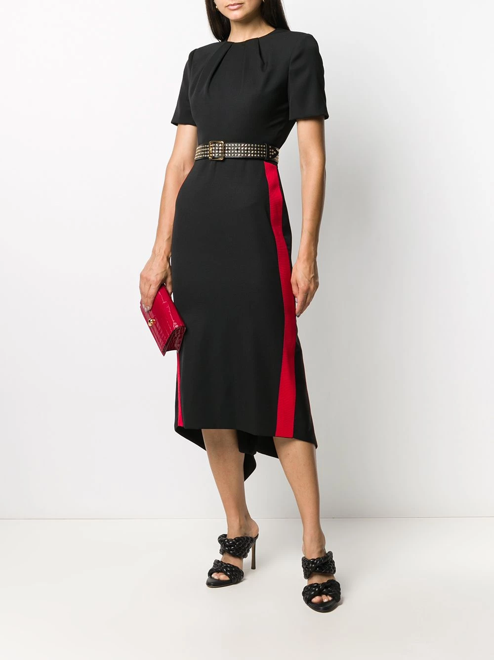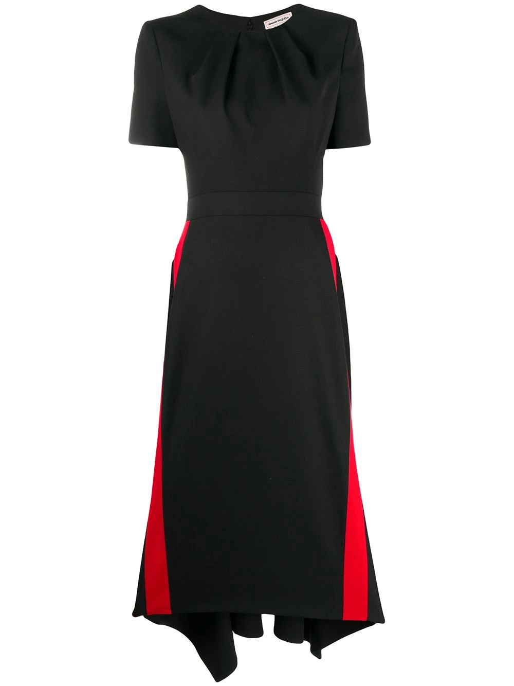 If you’re looking to make an entrance, then this Alexander McQueen cocktail dress is your weapon of choice. Crafted from black silk blend, it has crimson red virgin wool stripe appliqués on the sides and a lovely draped back-panel on the skirt. Walk into that party like you own it, because in this dress you certainly do.