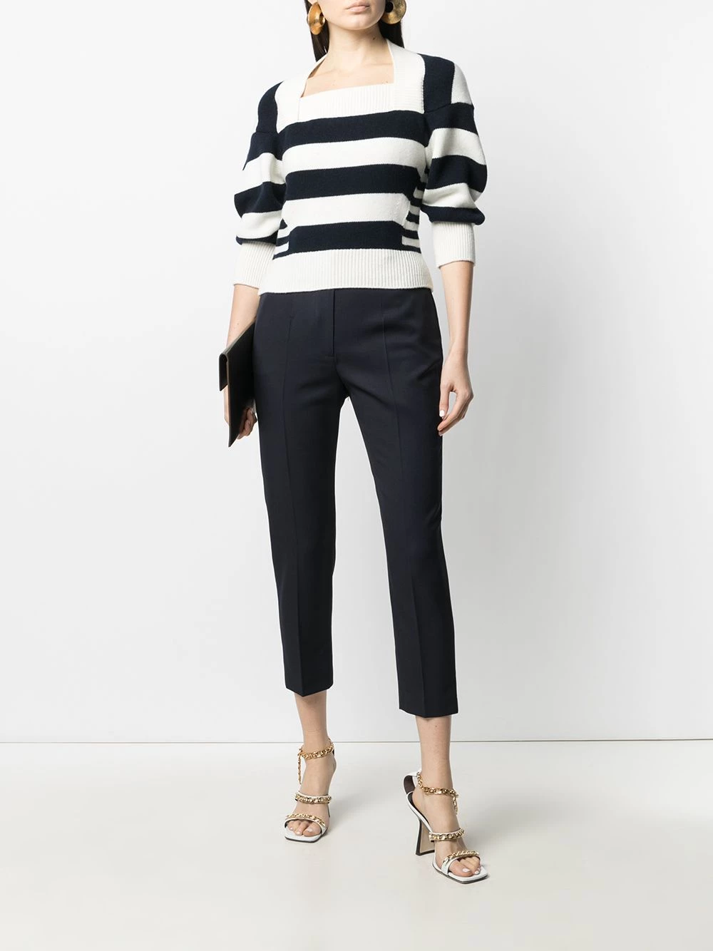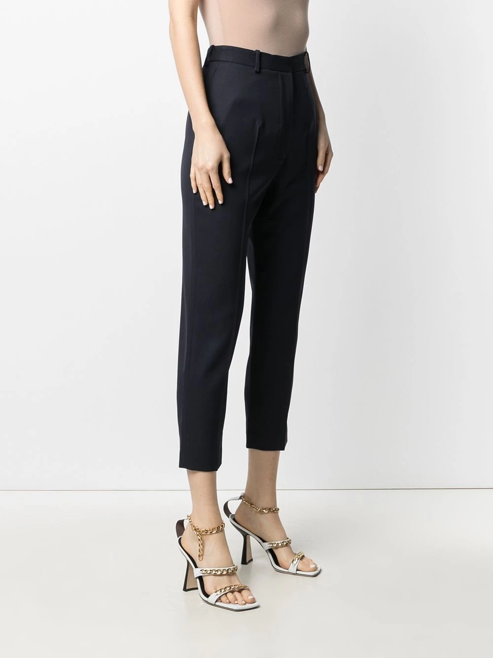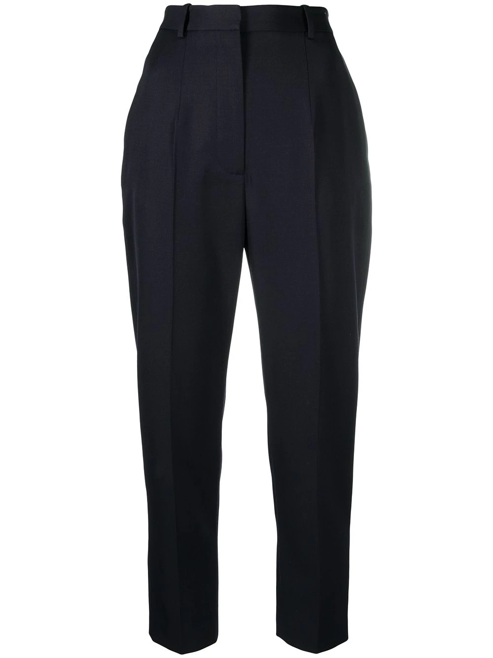 Restlessly inserting light punk rock references to traditional pieces, Alexander McQueen is the place of birth of attitude and statements, as seen in these high waist cigarette trousers. You’ll rock them, for sure.