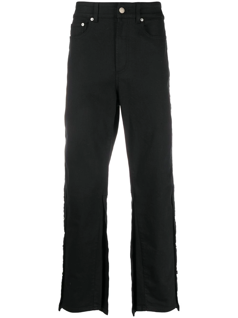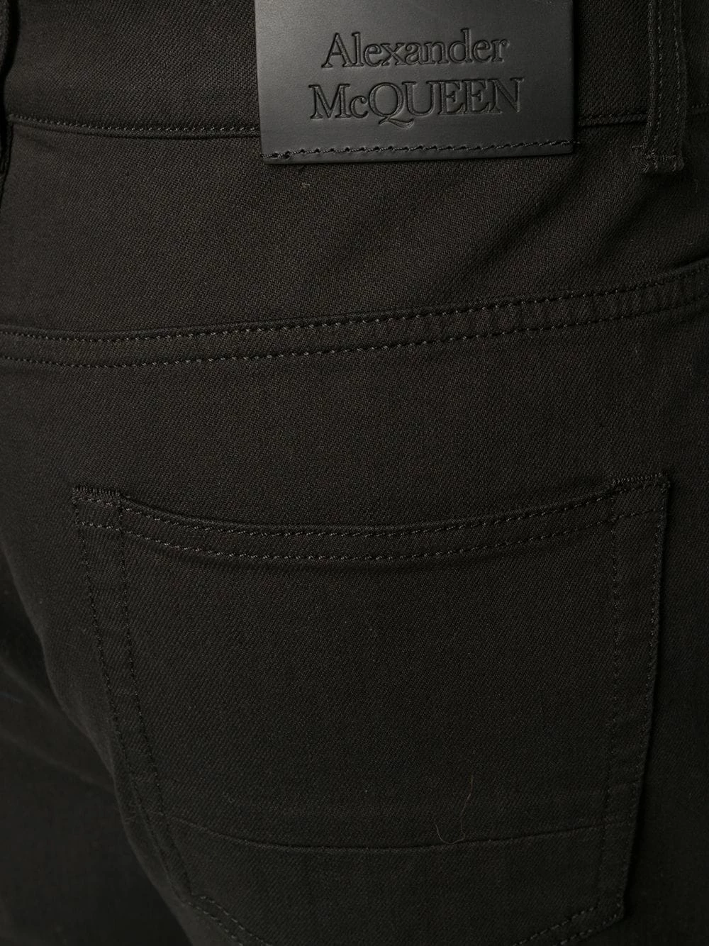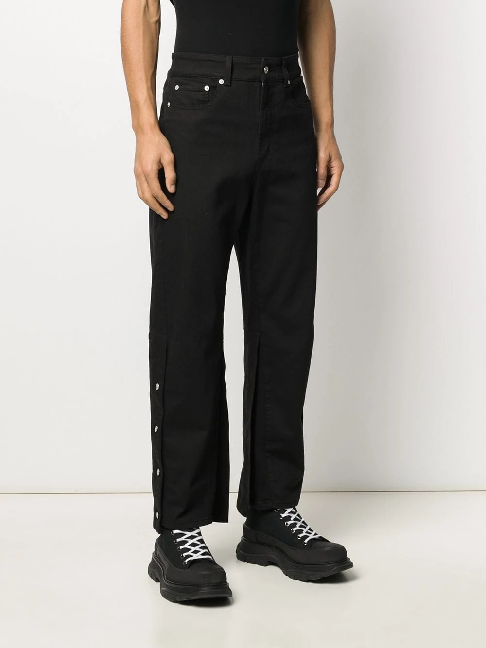 Jeans get a major update with side snap fastenings courtesy of Alexander McQueen. Crafted from black stretch cotton, they have a loose-fit leg. They’re anything but basic. Featuring a front button fastening, belt loops, a five pocket design and side snap fastenings.