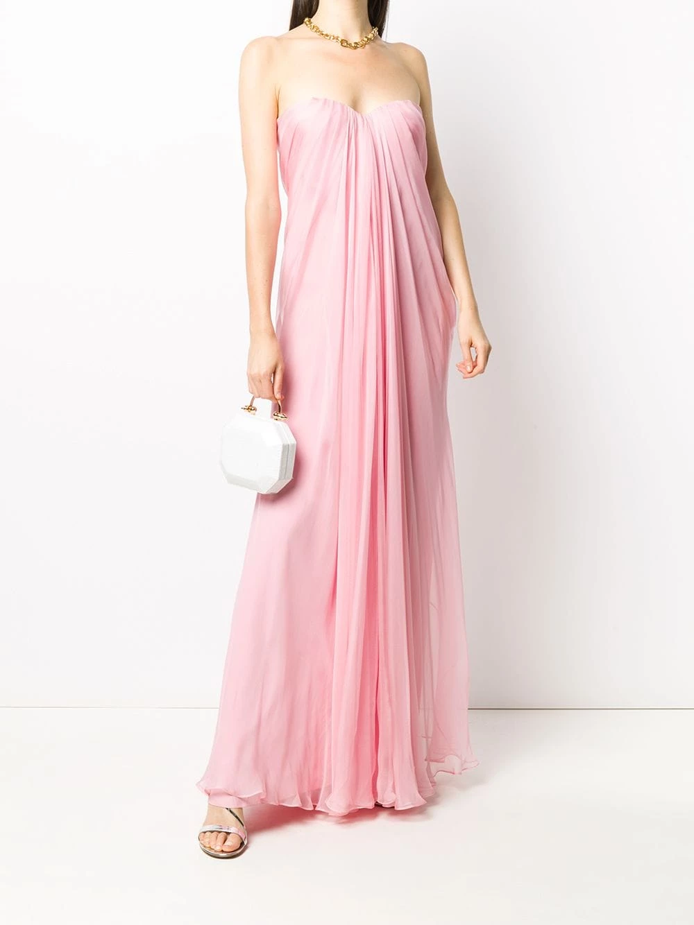 Alexander McQueen isn’t all skulls and studs, you know. For those events when you want a break from gothic undertones and fancy yourself some elegance, opt for this pink silk pleated strapless dress. Tomorrow you can go back to the studs.