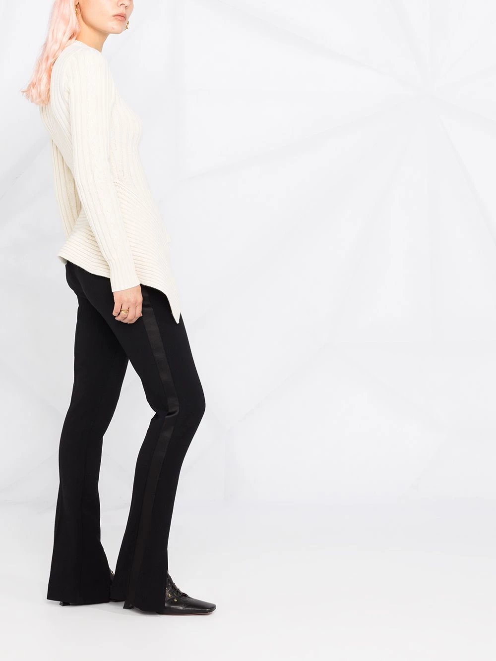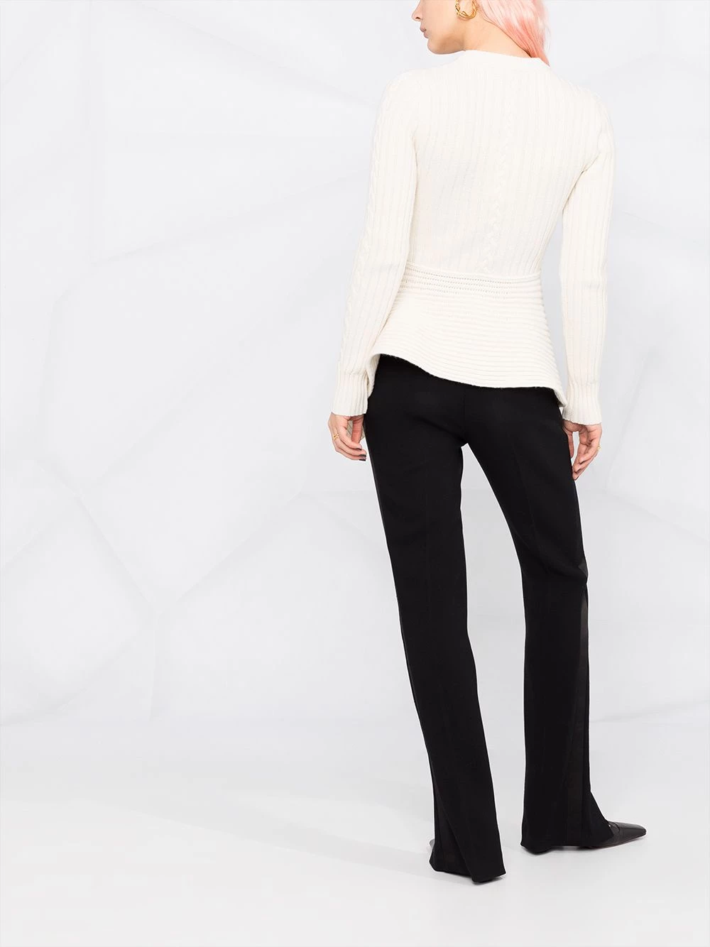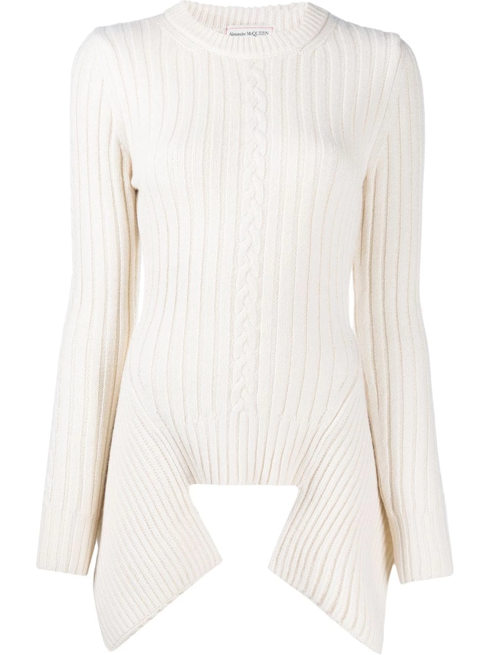 Next level knitwear. Alexander McQueen takes your winter layering to new heights with this ribbed jumper, featuring cable knit panels and an asymmetric hem. Warmth and style.