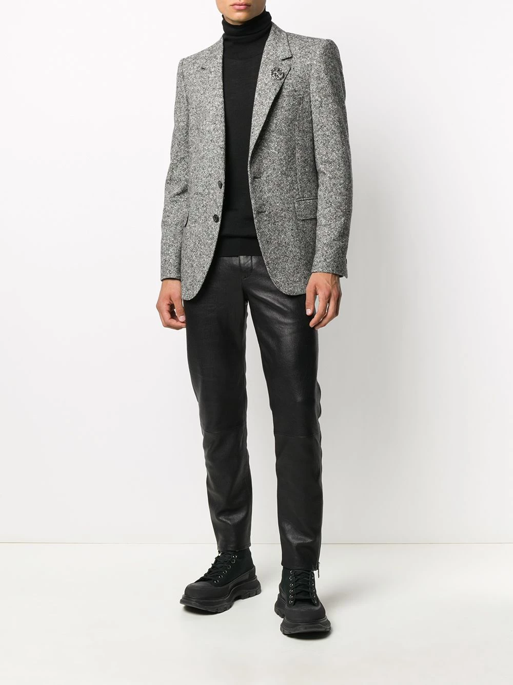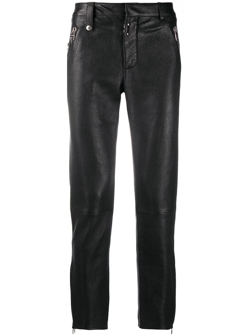 Add some tough-luxe edge to your looks. Crafted from supple black lambskin, these slim-fit trousers from Alexander McQueen boasts silver-tone zip details for a biker aesthetic. You won’t look out of place posing by a Harley.
