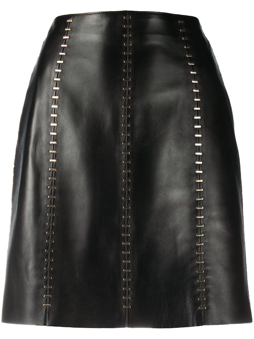 Alexander McQueen always have the ability to shock and surprise, and they’ve done it again โ who else would turn the trusty staple from desk essential to style essential? Made in Italy with a silk lining, this stapled lambskin skirt is โ pardon the pun โ a wardrobe staple.