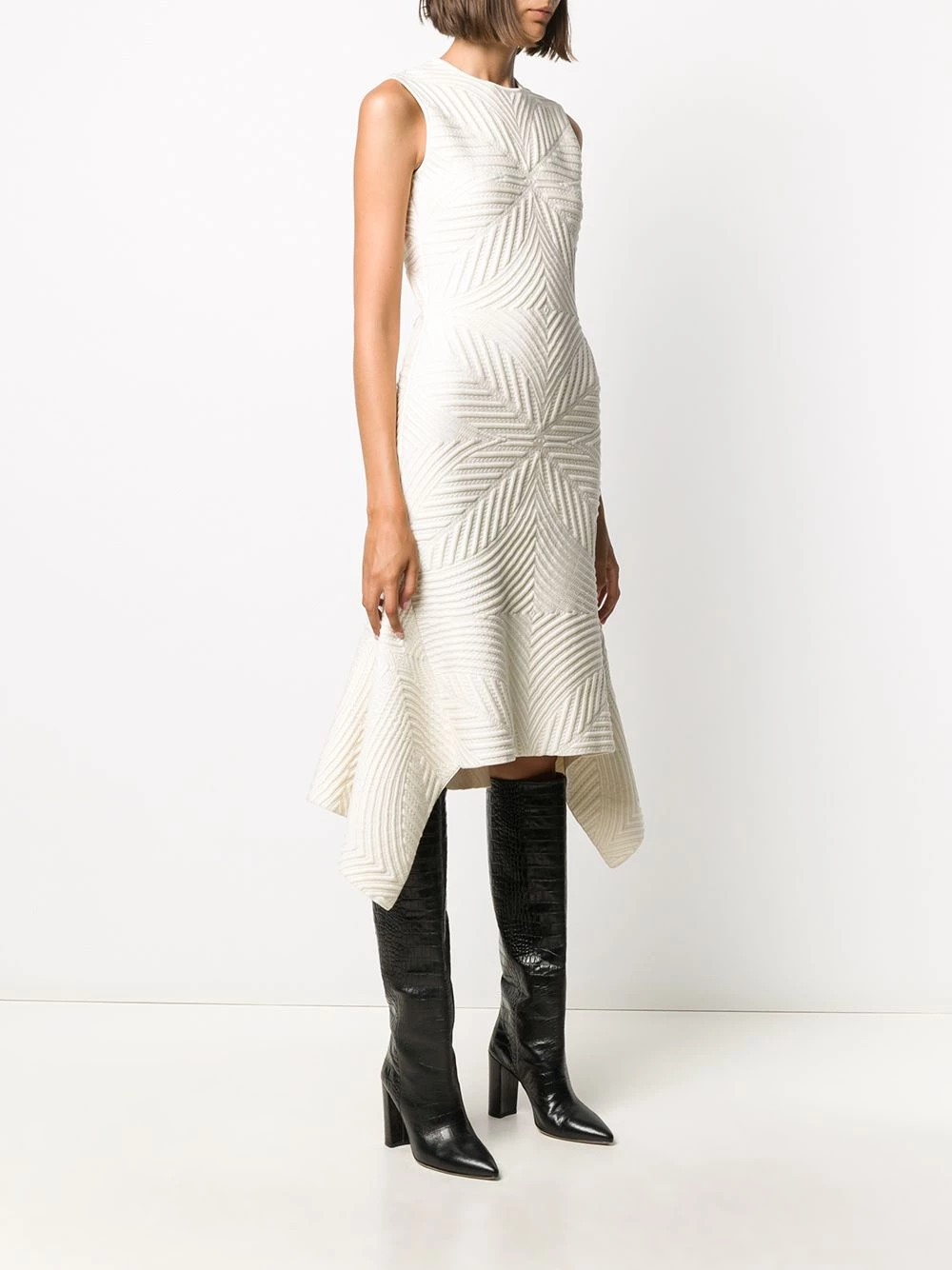 Want to ensure that all eyes are on you? Just put on this textured dress from Alexander McQueen. This asymmetric design was made to be noticed.ย
