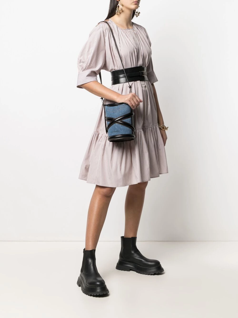 Behold Alexander McQueen’s take on the bucket bag. Crafted from denim, this accessory called The Curve boasts a leather trim that resembles the House’s iconic harness silhouette. Fashion with history.