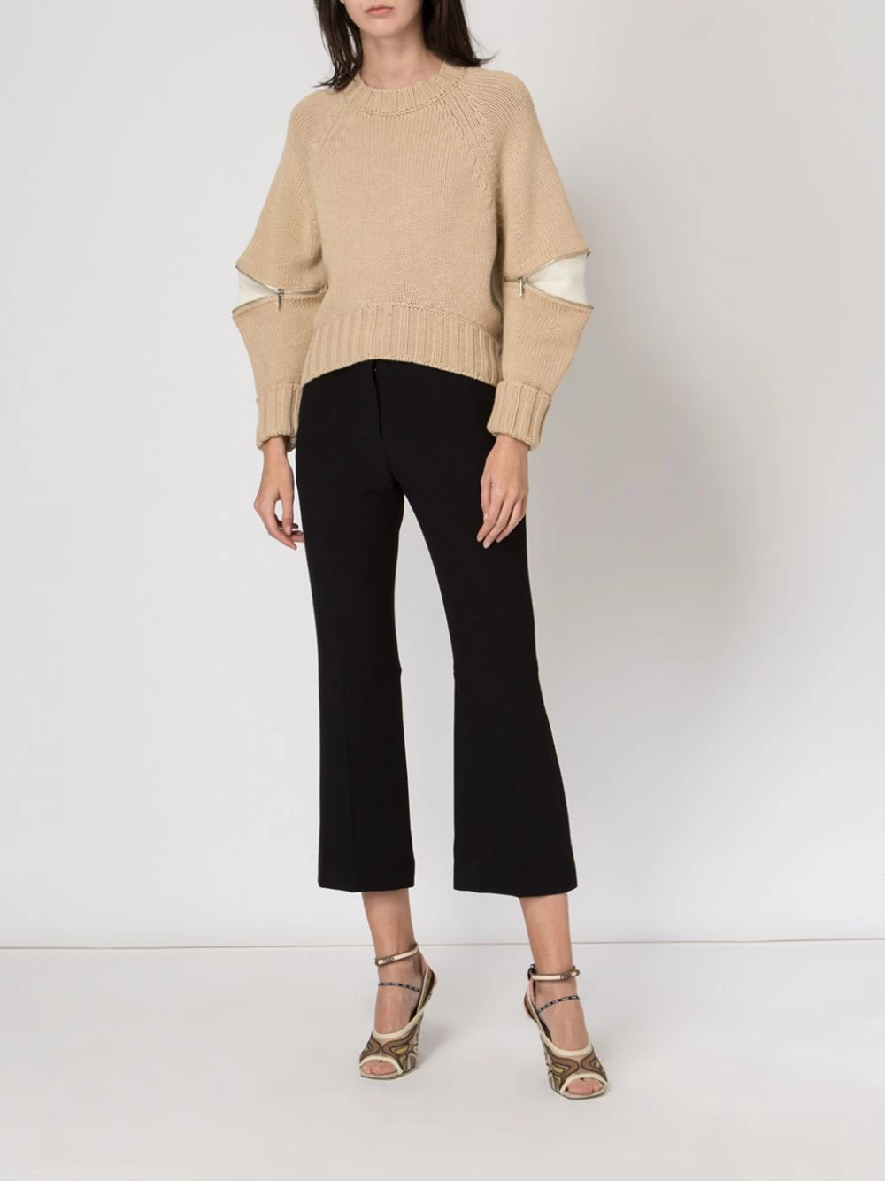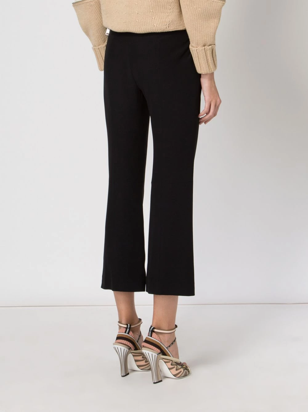 Home to the edgy and mysteriously alluring, Alexander McQueen is an encounter of finesse and duskiness. Presenting these black cropped flared trousers for workday formal with a flair (or flare). Featuring a mid rise, a concealed front fastening, side slit pockets, a flared style and a cropped length.