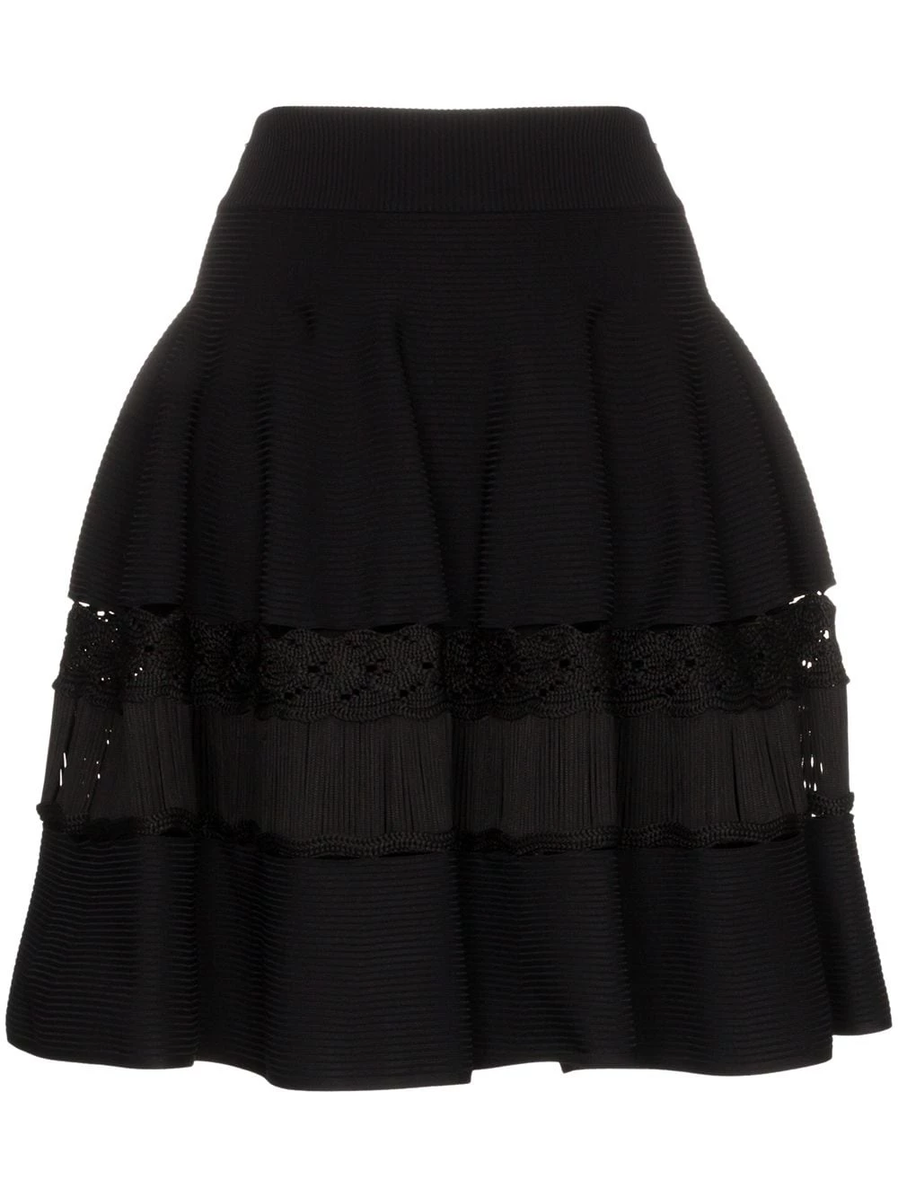 Alexander McQueen’s skirt will no doubt become a wardrobe fail-safe for an array of events. Designed to sit high on the waist, it’s made from stretch-knit and is punctuated with a macrame panel at the hem that reveals a glimpse of skin. Can’t beat a classic. Featuring a high rise and macrame hem.