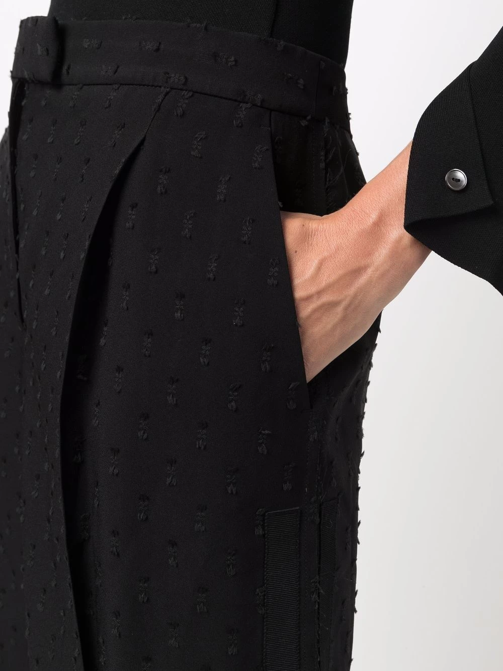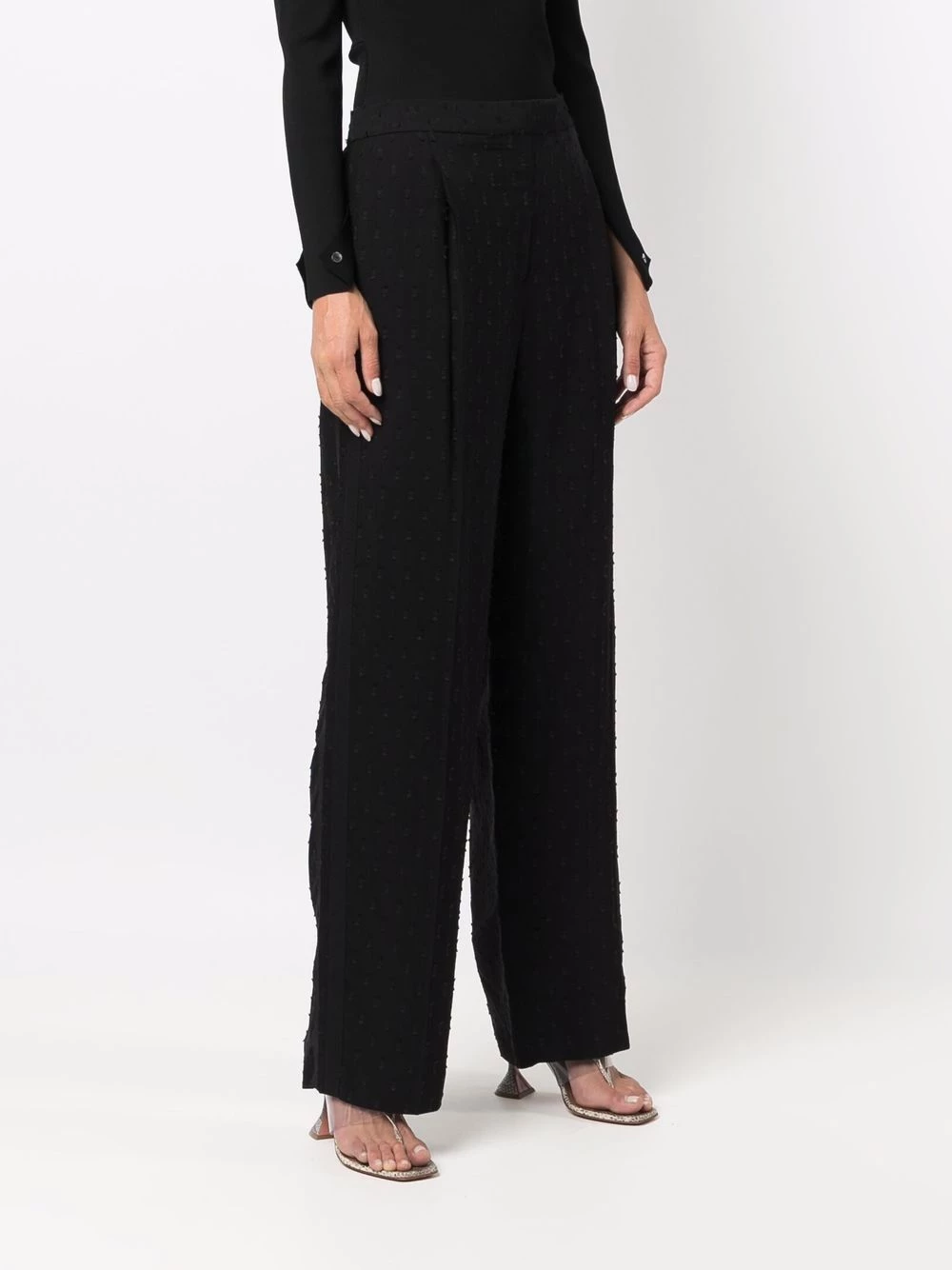 In a subtle approach to branding, Alexander McQueen presents these high-waisted trousers. In a wide-leg silhouette, this pair is delicately punctuated by tonal logo embroidery.