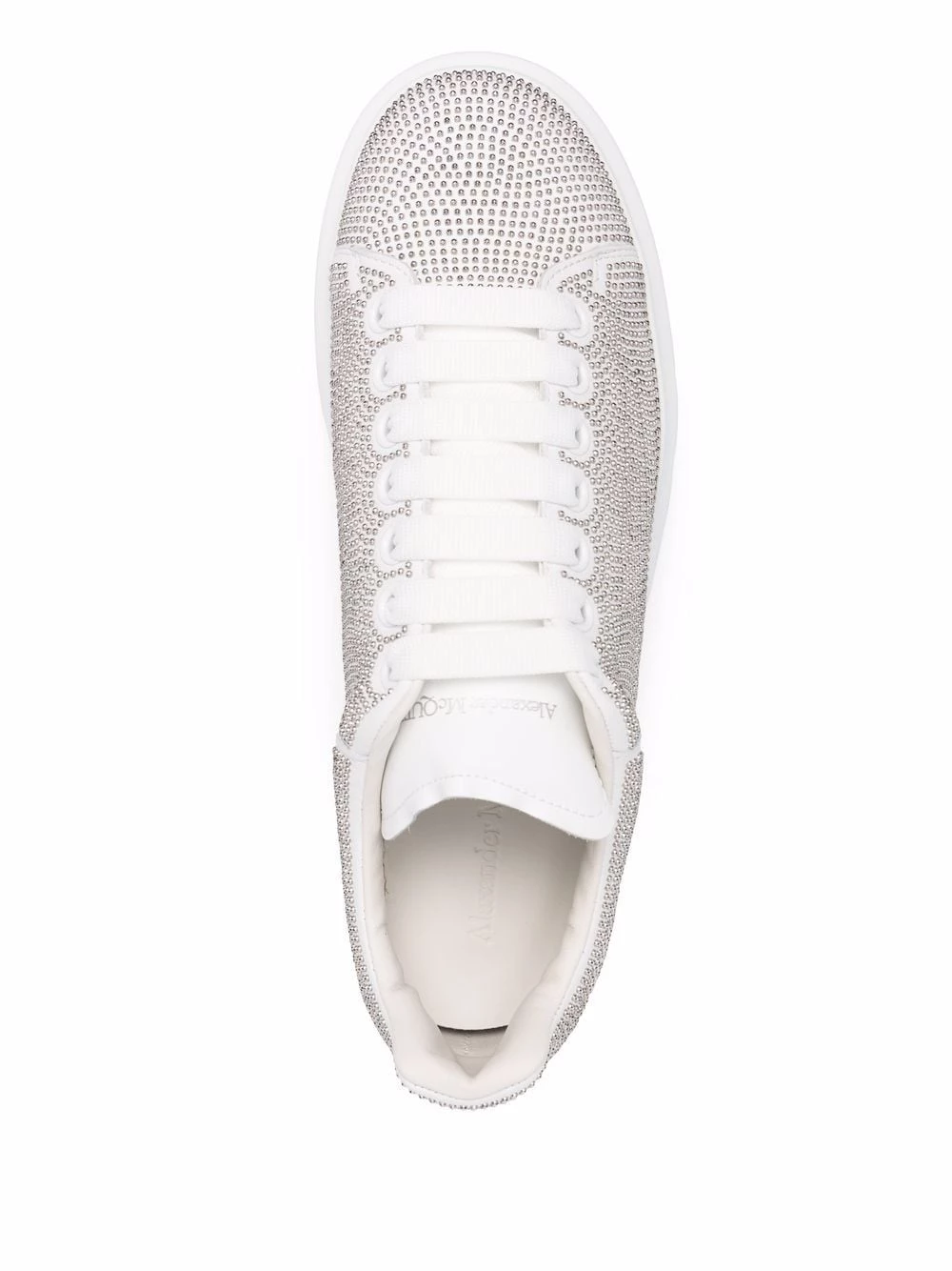 Alexander McQueenโs famed Oversize sneakers get a distinctive upgrade in this iteration from the labelโs AW21 collection. Crafted from leather, this pair is covered in silver-tone studs for a charismatic visual effect.