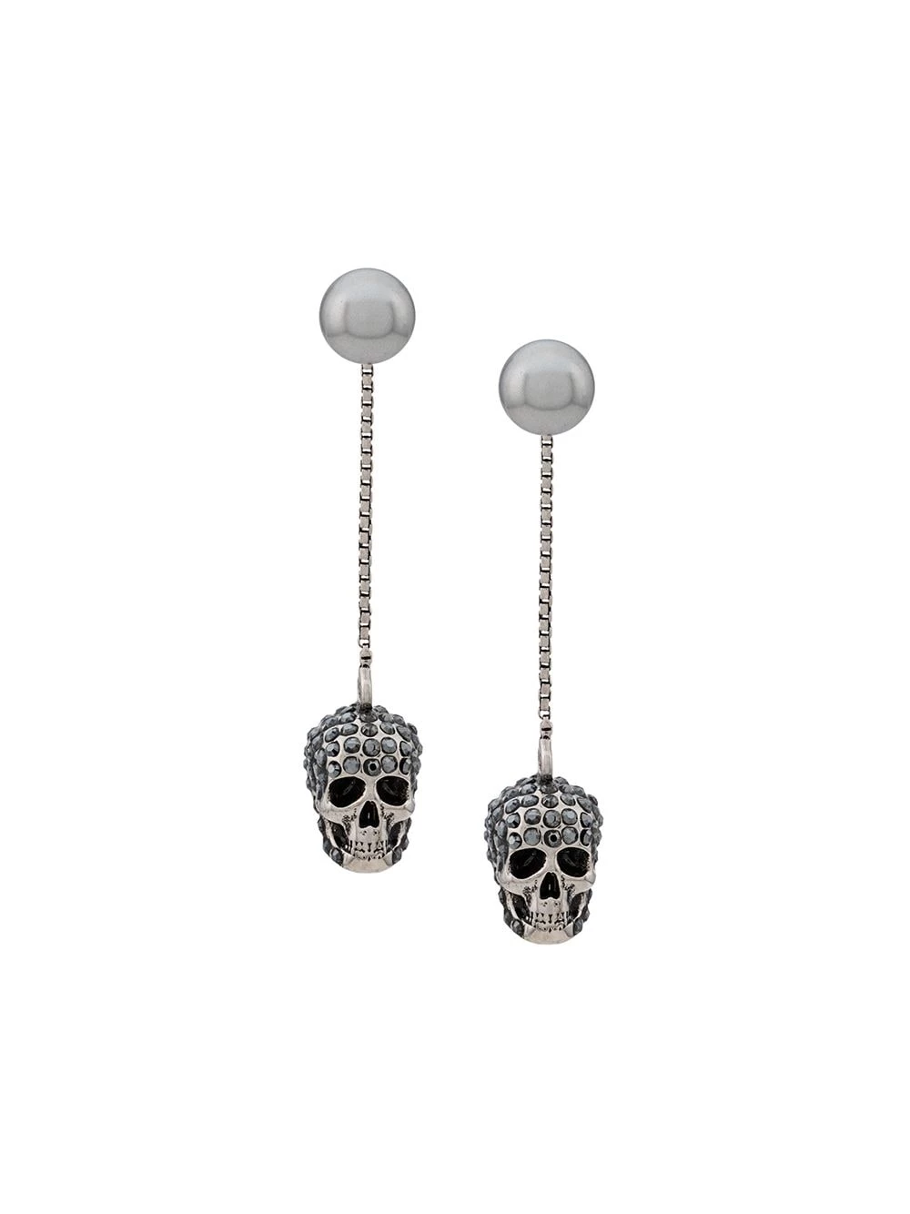 Alexander McQueen is renowned for being the champion of eye-popping theatrics, toughening up everyday accessories with gothic romanticism as seen in these skull embellished drop earrings. Featuring a clip on fastening and crystal embellishments. These earrings come as a pair.