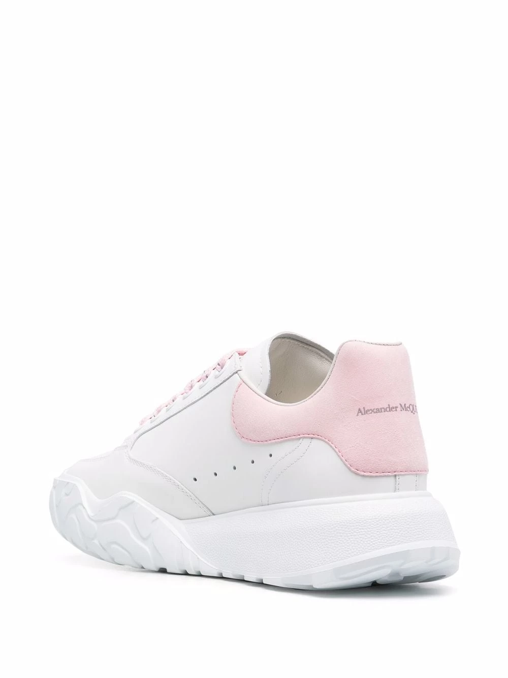 Resting on a playful leopard rubber outsole, Alexander McQueen’s Court sneakers combine sporty elements with excellent craftmanship. They are crafted in Italy from leather and feature a contrasting branded heel counter and subtle perforated details.
