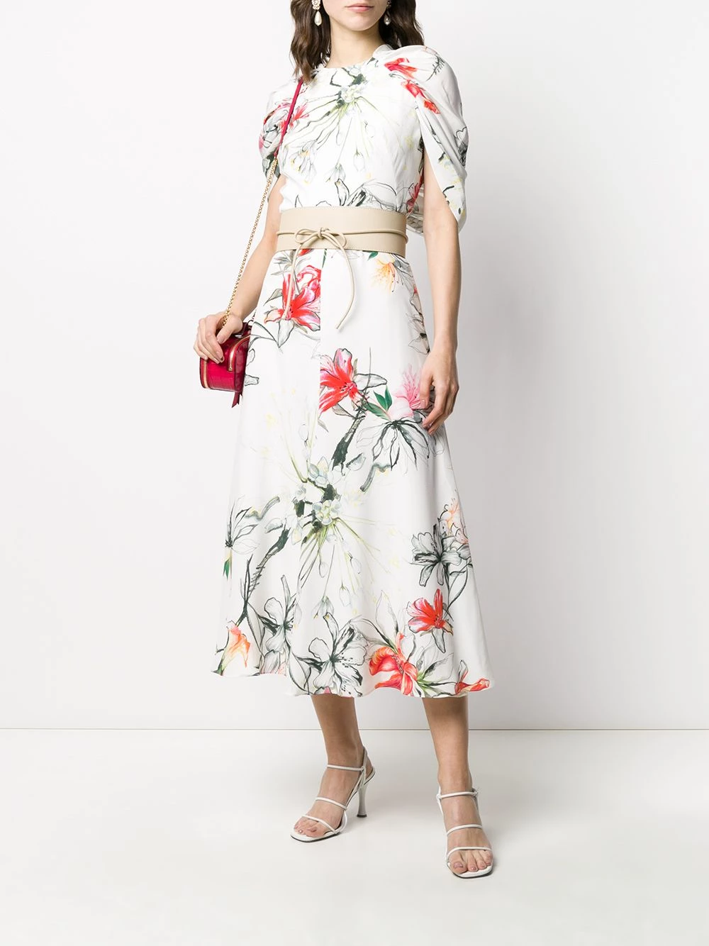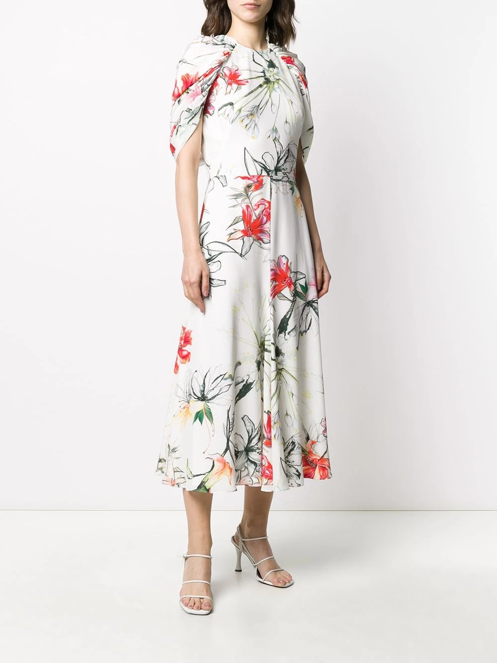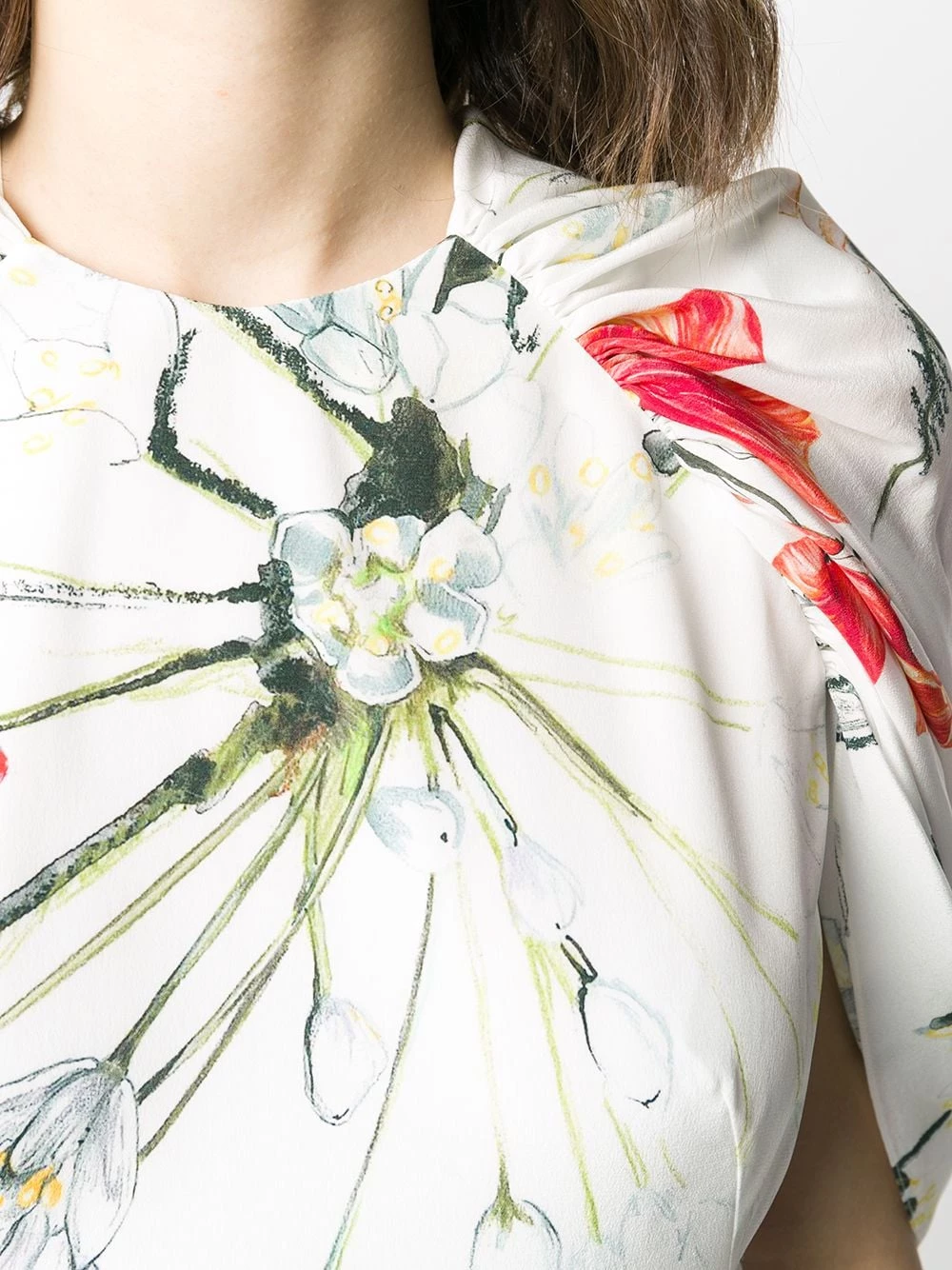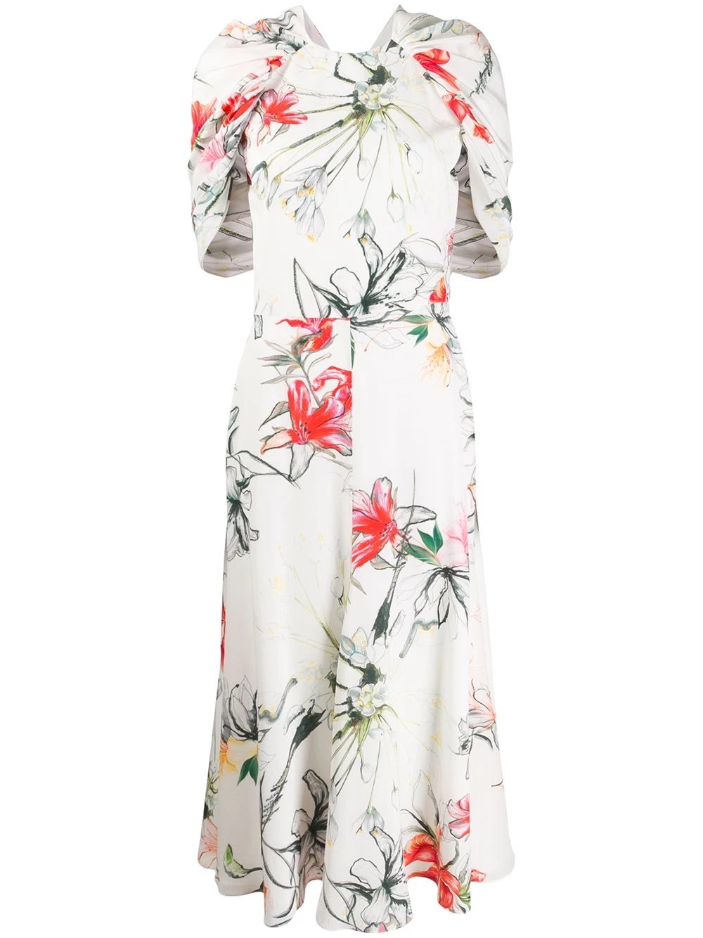 Alexander McQueen reminds you to stop and smell the roses, with this floral-print piece. And if you wear it to attend that garden party you have coming up, you could do just that. You’ll bloomin’ love how you feel in this nature-inspired look. Featuring a round neck, gathering details, short sleeves, a floral print, a fitted waist and a mid-length.