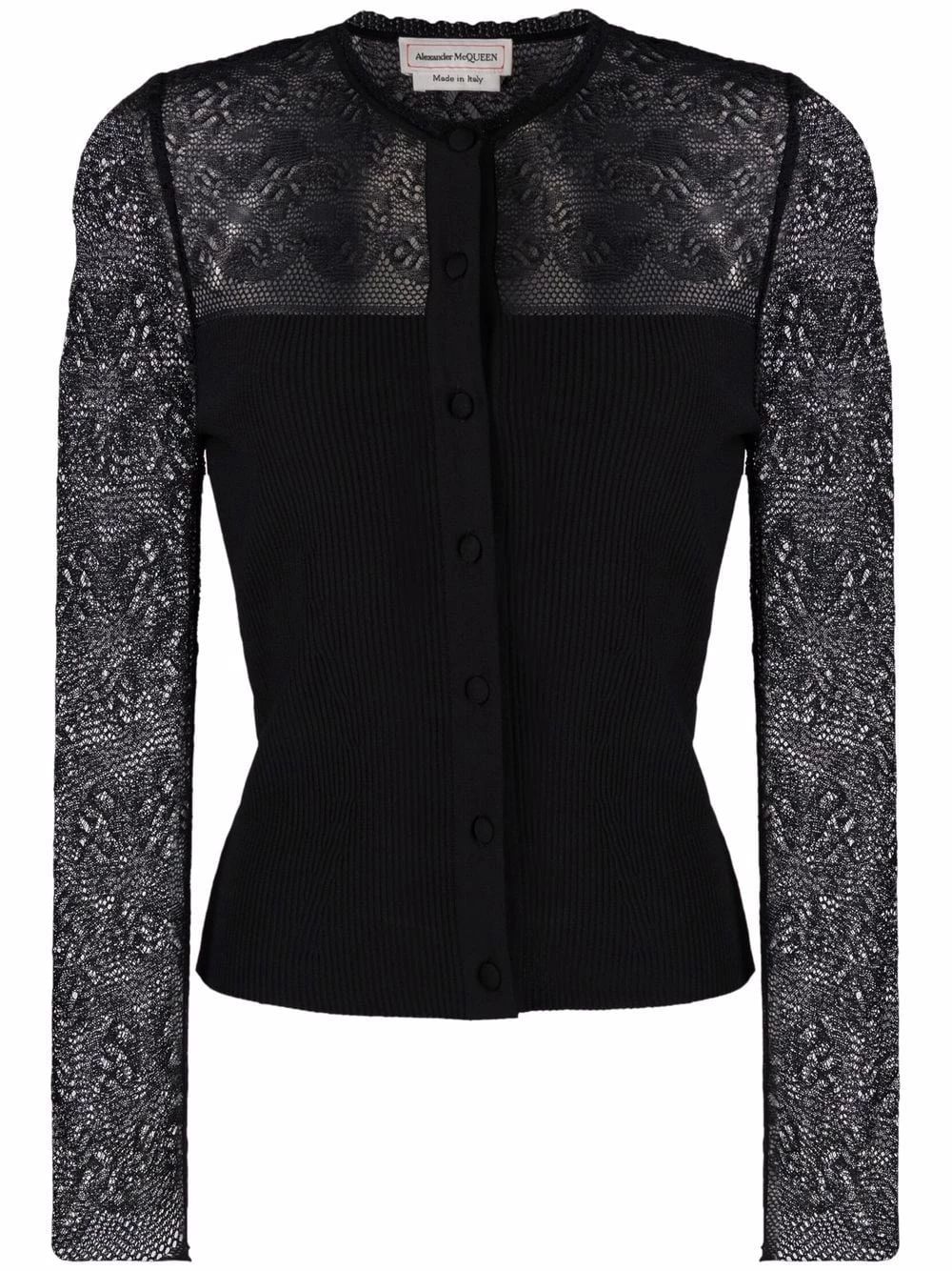 There are few things in the world as elegant as lace, and few garments as essential as a cardigan. So, keeping that in mind, we’d call this Alexander McQueen cardigan an example of essential elegance.