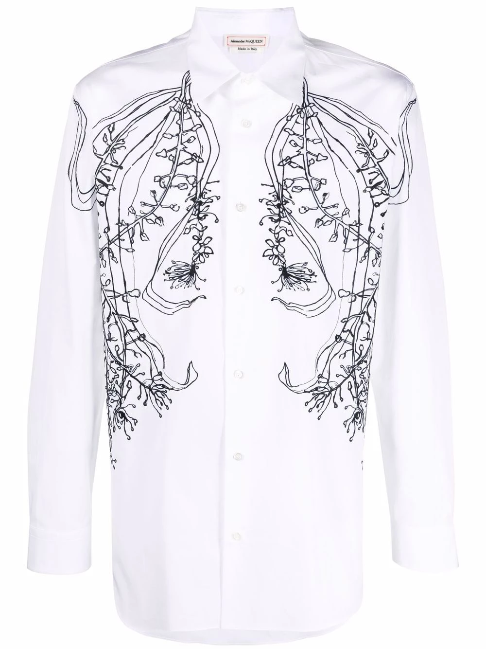 Alexander McQueen forgoes its signature skull motif in favour of intricate embroidery. Decorated with a contrasting black Meadow motif, this long-sleeve cotton shirt showcases the brand’s eye for detail.